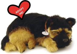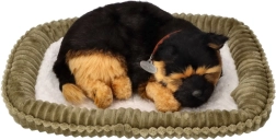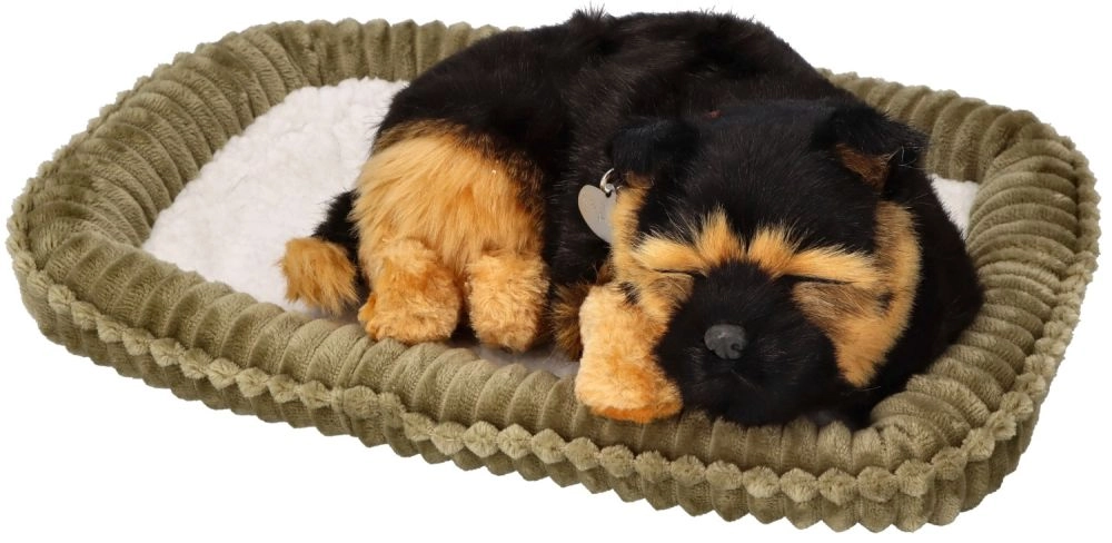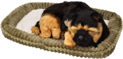 Προσφέρετε στα παιδιά ή στον εαυτό σας έναν καθησυχαστικό σύντροφο: αυτό το κουταβάκι γερμανικού ποιμενικού «αναπνέει» απαλά και ξεκουράζεται ευτυχισμένο στο μαλακό του κρεβατάκι. Τα ρεαλιστικά στοιχεία, το έντονο μαύρο-καφέ τρίχωμα και η γλυκιά κοιμισμένη στάση το καθιστούν ιδανικό δώρο για λάτρεις των σκύλων.