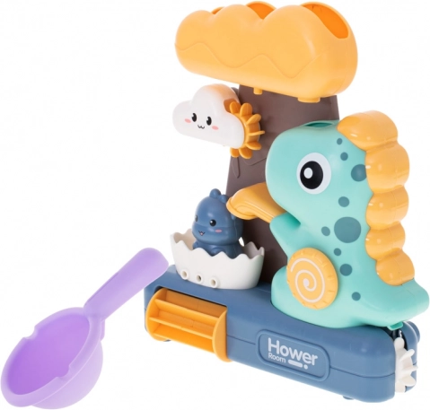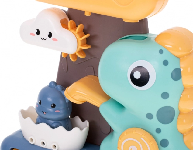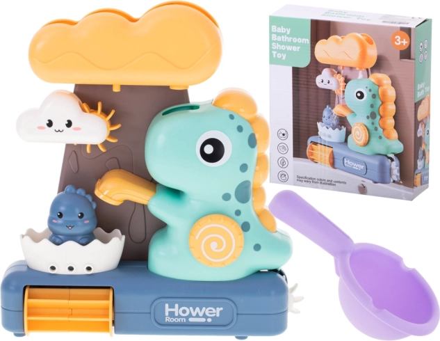 Το παιδικό παιχνίδι μπάνιου με δεινόσαυρους και υδάτινο τροχό είναι ένας εξαιρετικός τρόπος για να κάνετε το μπάνιο των μικρών πιο διασκεδαστικό. Το παιχνίδι συνίσταται στο να ρίχνετε νερό στο επάνω δοχείο σε σχήμα μεγάλου σύννεφου, από όπου το νερό ρέει αυτόματα μέσα από όλα τα μέρη του παιχνιδιού, προσφέροντας οπτική διασκέδαση για τα παιδιά.