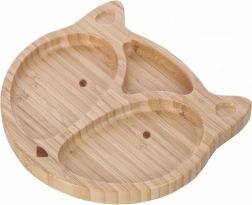 Αυτό το χαριτωμένο πιατάκι από μπαμπού έχει σχεδιαστεί για να διευκολύνει το τάισμα των μικρών παιδιών. Χάρη στη ειδική βεντούζα στο κάτω μέρος, το πιάτο μένει σταθερά πάνω στο τραπέζι και αποτρέπει το αναποδογύρισμα. Τρία χωρίσματα επιτρέπουν τον διαχωρισμό του φαγητού και διατηρούν το γεύμα οργανωμένο.