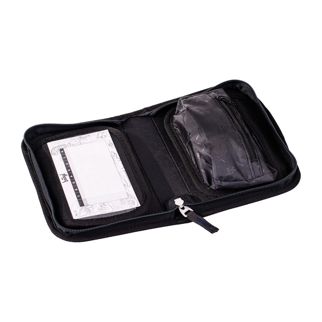 Χάρη στον ευρύχωρο σχεδιασμό, η κασετίνα μπορεί να ανοίξει και να ξεδιπλωθεί πλήρως, διευκολύνοντας τον γρήγορο προσανατολισμό στο περιεχόμενό της. Οι σταθερές λαστιχένιες θηλιές είναι κατάλληλες και για τριγωνικά μολύβια και μαρκαδόρους.