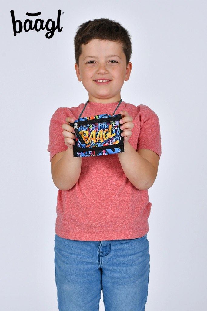 Ψάχνετε ασφαλή και άνετη αποθήκευση χρημάτων και μικροαντικειμένων για παιδιά και εφήβους; Το πορτοφόλι BAAGL λαιμού με μοτίβο Skatepark εντυπωσιάζει με πολύχρωμο graffiti στυλ και έξυπνη διάταξη των θηκών. Χάρη στο ρυθμιζόμενο λουράκι με ασφάλεια, φοριέται άνετα και παραμένει πάντα υπό έλεγχο.