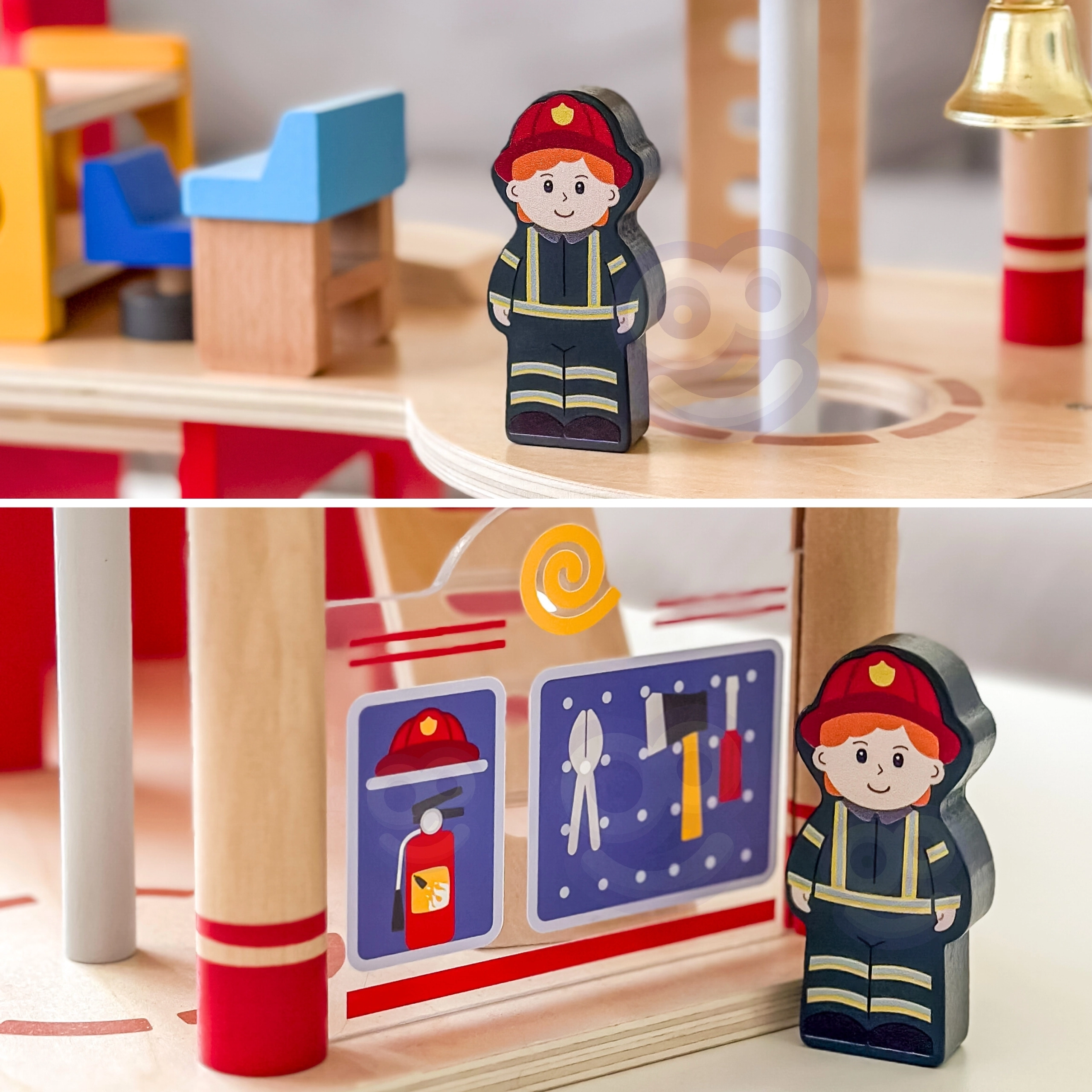 Τα παιδιά μπορούν να σημάνουν συναγερμό με το κουδούνι και να κατέβουν αστραπιαία από την κολόνα. Τα ρεαλιστικά στοιχεία ενισχύουν τη φαντασία και το role‑play.