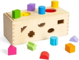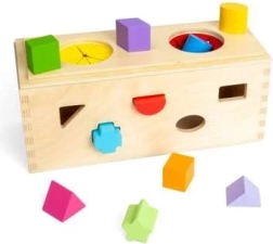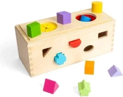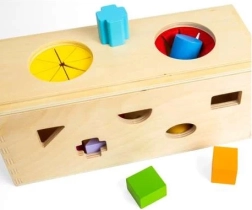 Εμπλουτίστε τις αισθητηριακές εμπειρίες των παιδιών σας με αυτό το ξύλινο μυστικό κουτί. Τοποθετήστε 10 σχήματα στα αντίστοιχα ανοίγματα στις πλευρές του κουτιού. Από δύο ανοίγματα στο επάνω μέρος τα παιδιά μπορούν να βάζουν τα χέρια τους, να ψηλαφούν και να αναγνωρίζουν τα σχήματα μέσα στο κουτί, βελτιώνοντας τις κινητικές δεξιότητες και τον συντονισμό χεριού-ματιού.