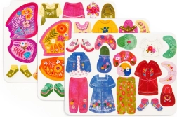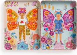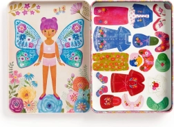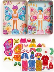 Το σετ περιλαμβάνει δύο εικονογραφημένες σκηνές με πεταλουδένιες δεσποινίδες που περιμένουν να τις ντύσετε. Δοκιμάστε περισσότερους από 40 μαγνήτες με ρούχα και φτερά πεταλούδας σε τρεις κάρτες. Κάθε κομμάτι μπορεί να συνδυαστεί σύμφωνα με τη δική σας φαντασία.