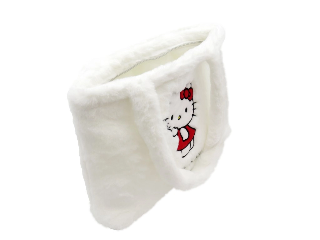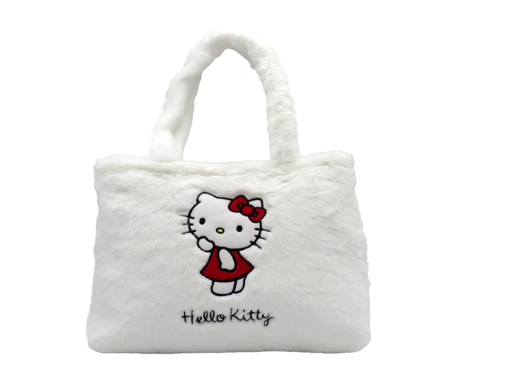 Η μεγάλη λούτρινη τσάντα Hello Kitty είναι κατασκευασμένη από ποιοτικά υλικά για απαλότητα και αντοχή, ιδανική για τη μεταφορά βιβλίων, μπουκαλιών και ειδών υγιεινής.