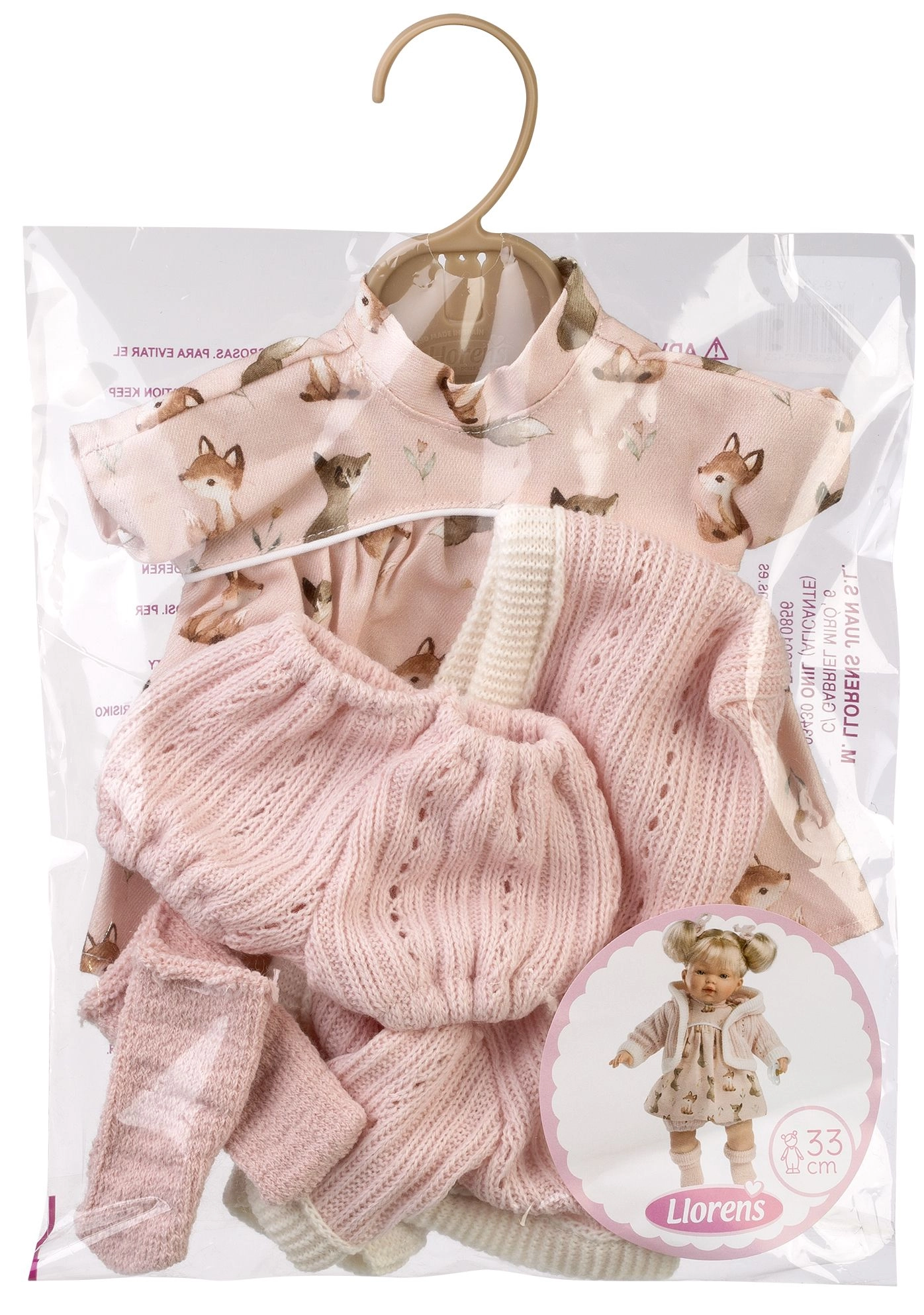 Σας παρουσιάζουμε το premium σετ ρούχων για κούκλες από τη μάρκα Llorens, σχεδιασμένο για τις πιο μικρές κομψές δεσποινίδες. Το σετ περιλαμβάνει τέσσερα προσεγμένα κομμάτια ένδυσης, που ταιριάζουν άψογα σε κούκλες μεγέθους 33 cm.