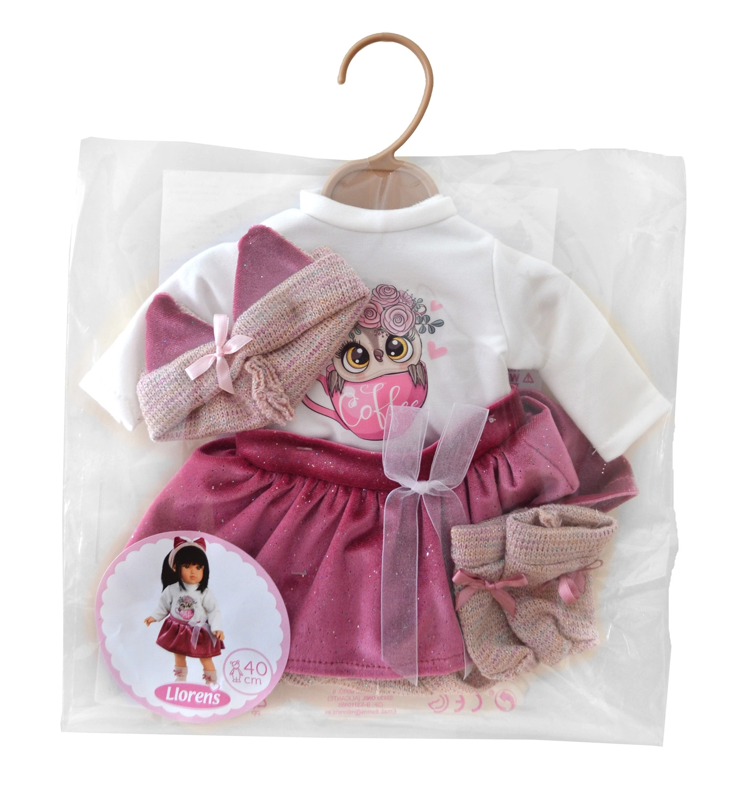 Συσκευάζεται σε πρακτική σακούλα πολυαιθυλενίου με πλαστική κρεμάστρα για εύκολη αποθήκευση. Τα ρουχαλάκια είναι συμβατά με τις περισσότερες κούκλες μεγέθους 40 cm.
