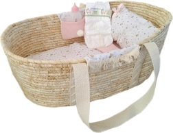 Το καλαθάκι είναι υφαντό στο χέρι από αποξηραμένα φύλλα καλαμποκιού, κάτι που το καθιστά οικολογικό προϊόν. Στη συσκευασία περιλαμβάνεται μπιμπερό παιχνιδιού που γεμίζει με νερό και μία πάνα μιας χρήσης. Απολαύστε ώρες διασκέδασης με αυτό το υπέροχο καλαθάκι, που είναι όχι μόνο στιλάτο αλλά και πρακτικό.