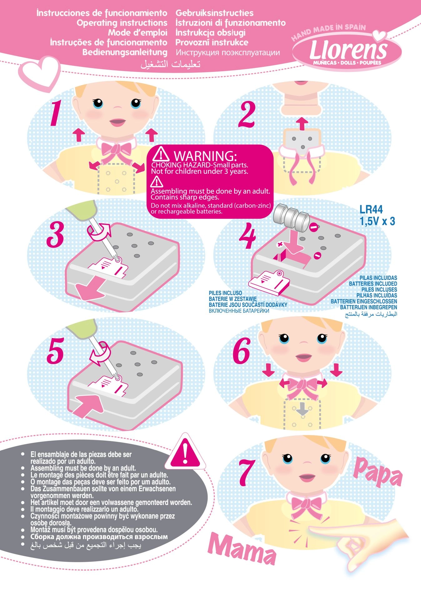 Με την αφαίρεση της πιπίλας από το στόμα, η κούκλα αρχίζει να επικοινωνεί με τα παιδιά μέσω ηχητικών εφέ. Η πιπίλα μπορεί να επανατοποθετηθεί εύκολα για να σταματήσουν οι ήχοι.