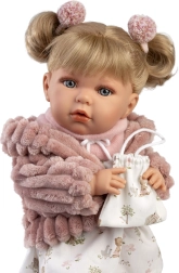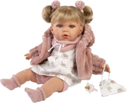 Η κούκλα Llorens Julia, με τη μαλακή υφασμάτινη κατασκευή και την ποιοτική βινυλική επιφάνεια στο κεφάλι και τα άκρα, προσφέρει μια αξέχαστη εμπειρία παιχνιδιού. Όταν αφαιρέσετε την πιπίλα, αρχίζει να λέει λέξεις όπως «μαμά» και «μπαμπά» και παράγει ρεαλιστικούς ήχους κλάματος, που μπορούν να κατευναστούν με την μαγνητική πιπίλα.