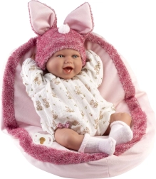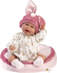 Ρεαλιστική κούκλα μωρό από τη Llorens, ιδανικό δώρο για παιδιά από 3 ετών. Αυτό το υπέροχο μωρό, όταν το πιέσετε στο στήθος, αρχίζει να γελάει και λέει «μαμά» και «μπαμπά». Το μαλακό υφασμάτινο σώμα και οι κινητές αρθρώσεις επιτρέπουν εύκολη τοποθέτηση σε στάσεις.