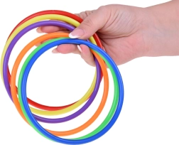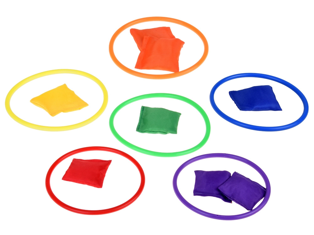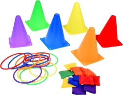 Αυτό το σετ παιχνιδιού είναι ιδανικό για παιδιά που τους αρέσει να περνούν τον χρόνο τους ενεργά. Περιλαμβάνει έξι χρωματιστούς κώνους, δώδεκα υφασμάτινα σακουλάκια και δώδεκα πλαστικά στεφάνια, που επιτρέπουν διάφορα είδη παιχνιδιών. Τα παιδιά μπορούν να βελτιώσουν τον συντονισμό και την ακρίβειά τους στη ρίψη και τη στόχευση.
