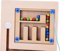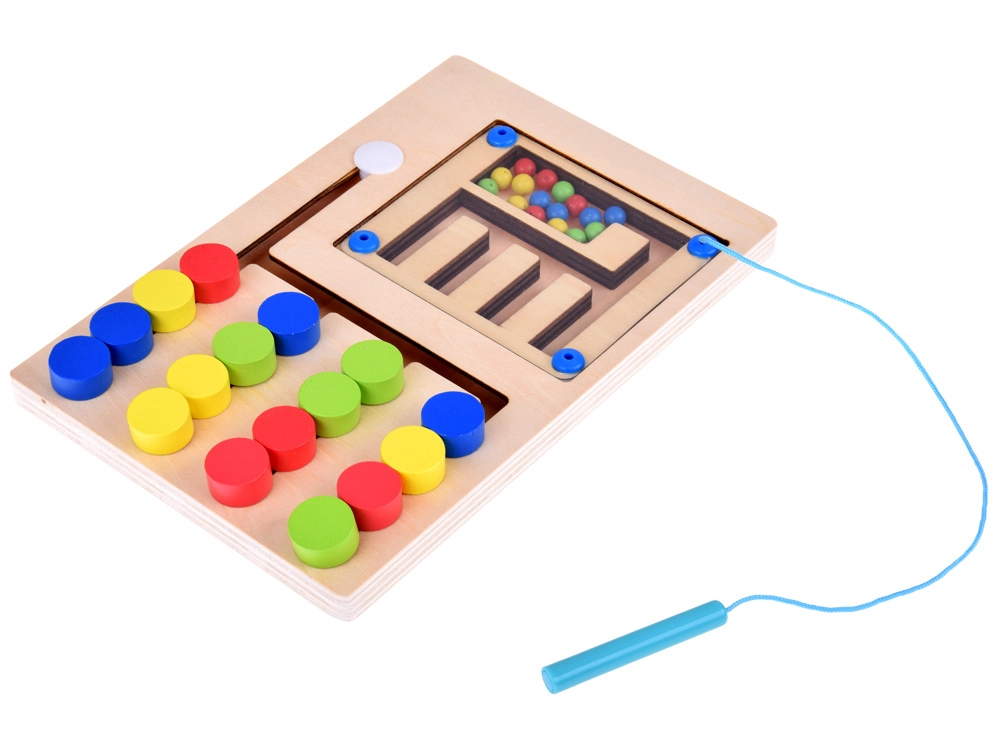 Το παιχνίδι περιλαμβάνει πολύχρωμες μπίλιες που τα παιδιά μετακινούν με τη βοήθεια μαγνητικού ραβδιού, ενισχύοντας τη λεπτή κινητικότητα και τον συντονισμό.