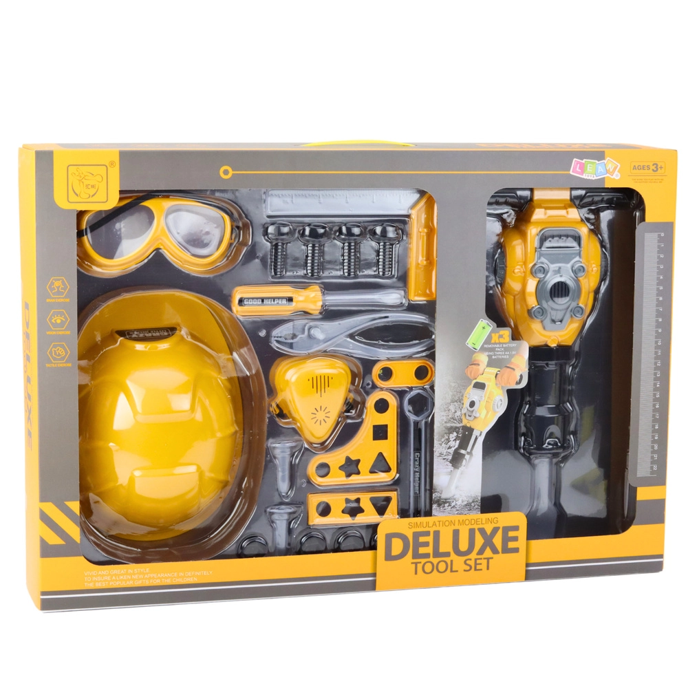 Το σετ Deluxe Tool Set είναι ένα πλήρες, ρεαλιστικό και ελκυστικό παιχνίδι για παιδιά που τους αρέσει να παρατηρούν τον κόσμο των ενηλίκων και ονειρεύονται τον δικό τους χώρο εργαστηρίου. Αυτό το παιδικό σετ περιλαμβάνει 21 στοιχεία, που επιτρέπουν στο παιδί να μπει στο ρόλο του οικοδόμου ή του μηχανικού.