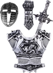 Το ιπποτικό σετ περιλαμβάνει όλα τα απαραίτητα στοιχεία για τη δημιουργία μιας ολοκληρωμένης ιπποτικής μορφής – από την πανοπλία, την ασπίδα και το κράνος μέχρι το ρεαλιστικά σχεδιασμένο σπαθί. Όλα τα εξαρτήματα είναι κατασκευασμένα από ανθεκτικό πλαστικό, που εξασφαλίζει ασφαλή χρήση ακόμη και για τα μικρότερα παιδιά.