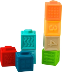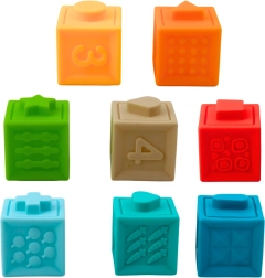 Τα λαστιχένια εκπαιδευτικά τουβλάκια προσφέρουν διασκέδαση και μάθηση μαζί. Σε κάθε πλευρά του τουβλακιού θα βρείτε διαφορετικές υφές, όπως αριθμούς, υφές αφής, ανάγλυφα ζωάκια και γεωμετρικά μοτίβα που ενισχύουν την αφή και την εξερεύνηση. Κάθε τουβλάκι διαθέτει ειδικά σχεδιασμένες προεξοχές και εσοχές, γεγονός που επιτρέπει τη σύνδεσή τους, την κατασκευή πύργων και το στοίβαγμα, αναπτύσσοντας έτσι τη λογική σκέψη και την υπομονή.