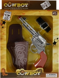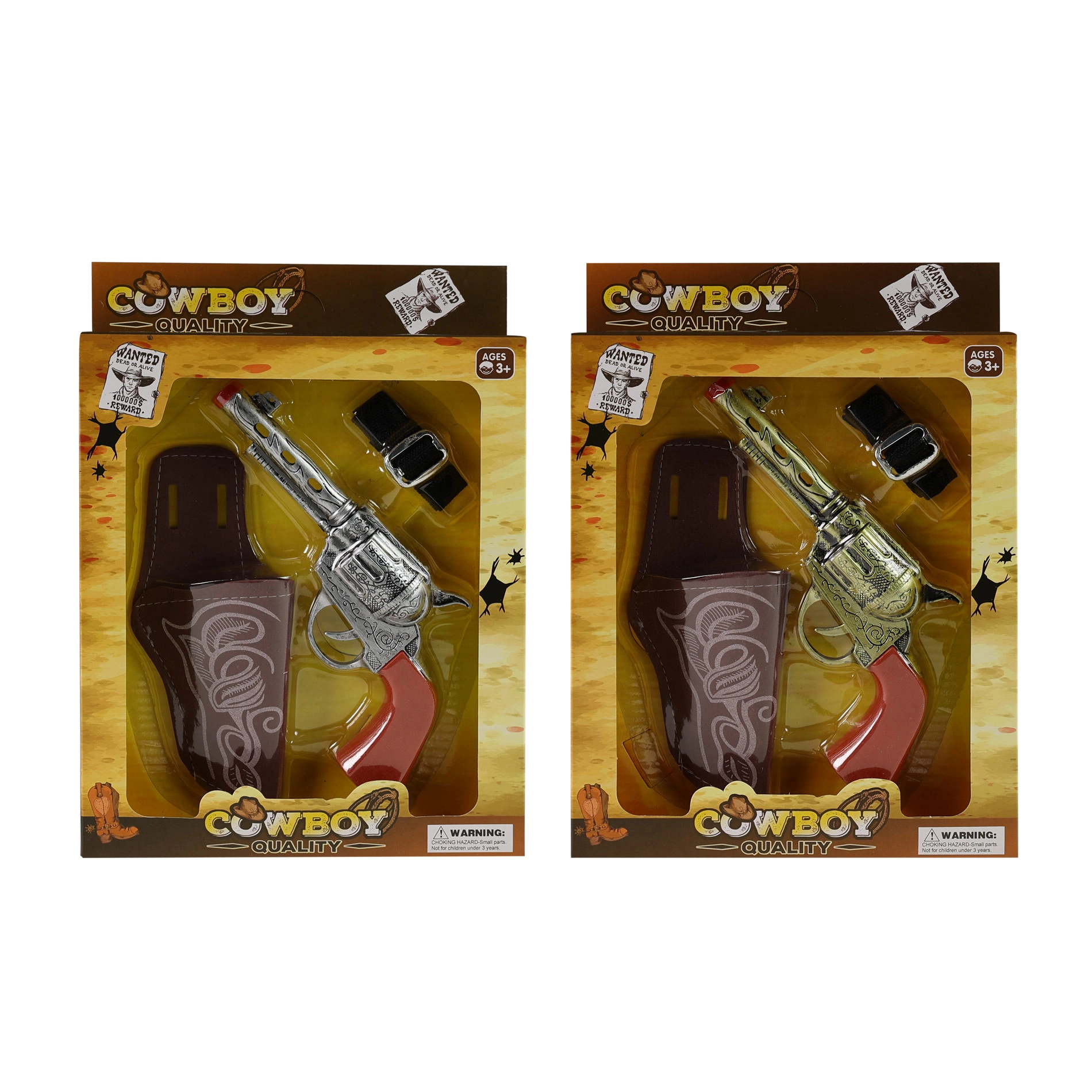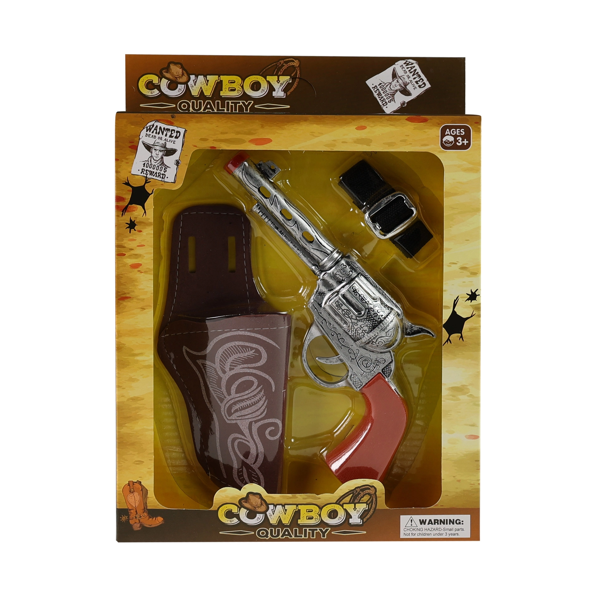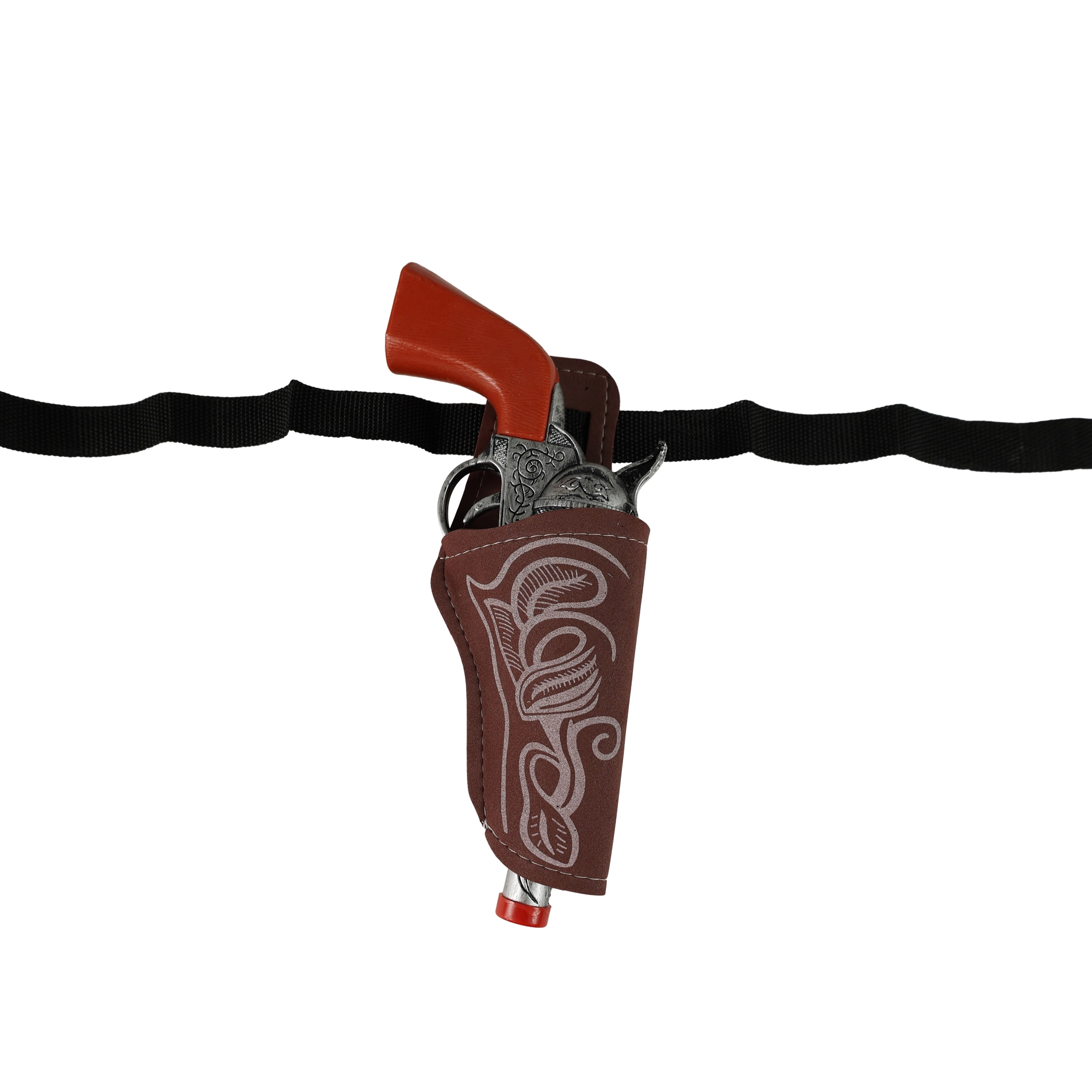 Γίνε ήρωας της Άγριας Δύσης με αυτό το έξυπνο σετ για μικρούς καουμπόηδες! Περιλαμβάνει πιστόλι με ηχητικά εφέ, θήκη και ζώνη για στερέωση.