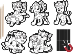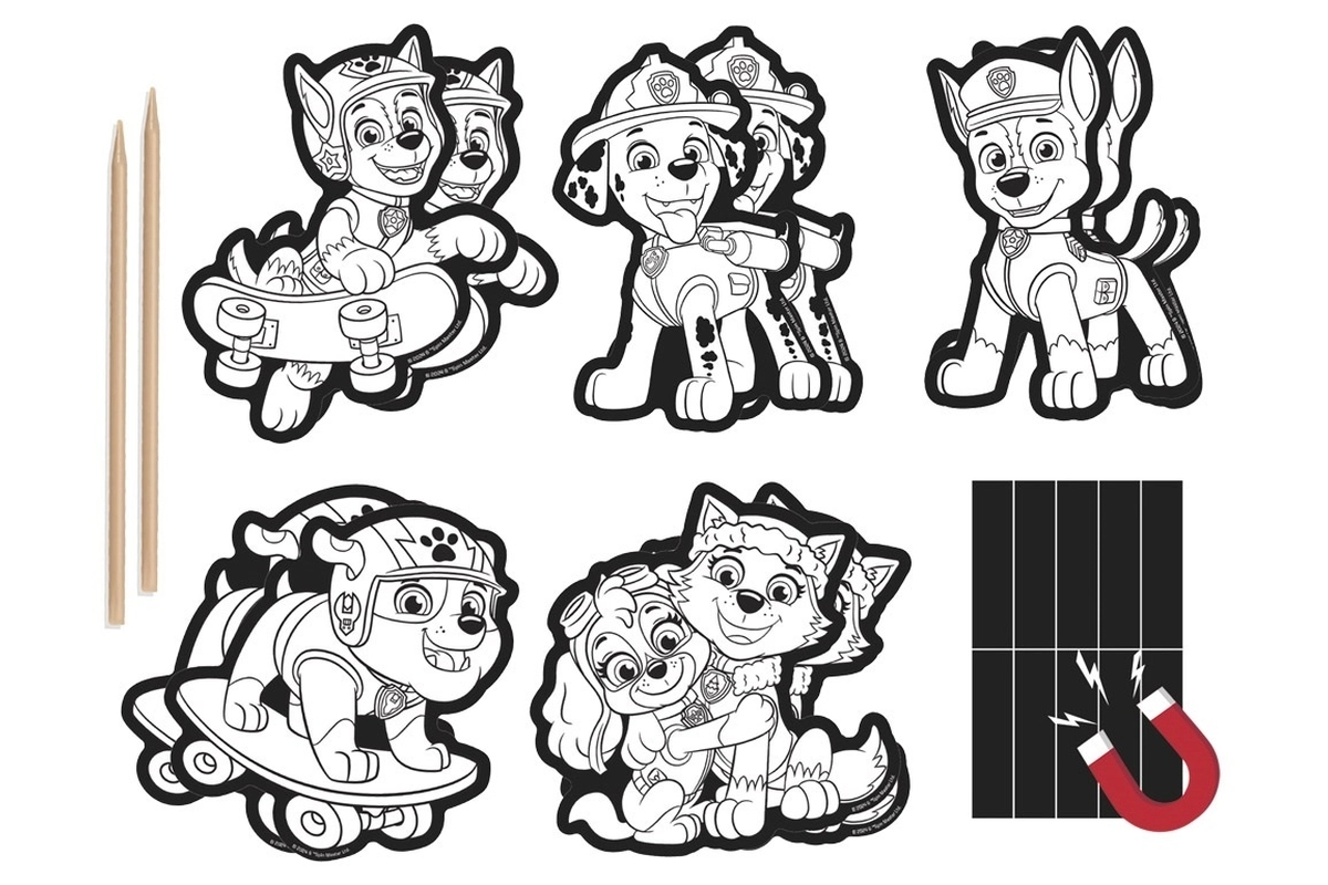 Φωτίστε το παιδικό δωμάτιο ή το ψυγείο! Αυτό το δημιουργικό σετ με θέματα από την Πατρόλα Σκύλων επιτρέπει στα παιδιά, με το ξύσιμο, να αποκαλύψουν ζωηρά χρώματα κάτω από τη μαύρη επίστρωση και να φτιάξουν μοναδικά μαγνητάκια. Κάθε εικόνα μετατρέπεται εύκολα σε μαγνήτη που μπορεί να τοποθετηθεί σε ψυγείο, πίνακα ή άλλες μεταλλικές επιφάνειες.
