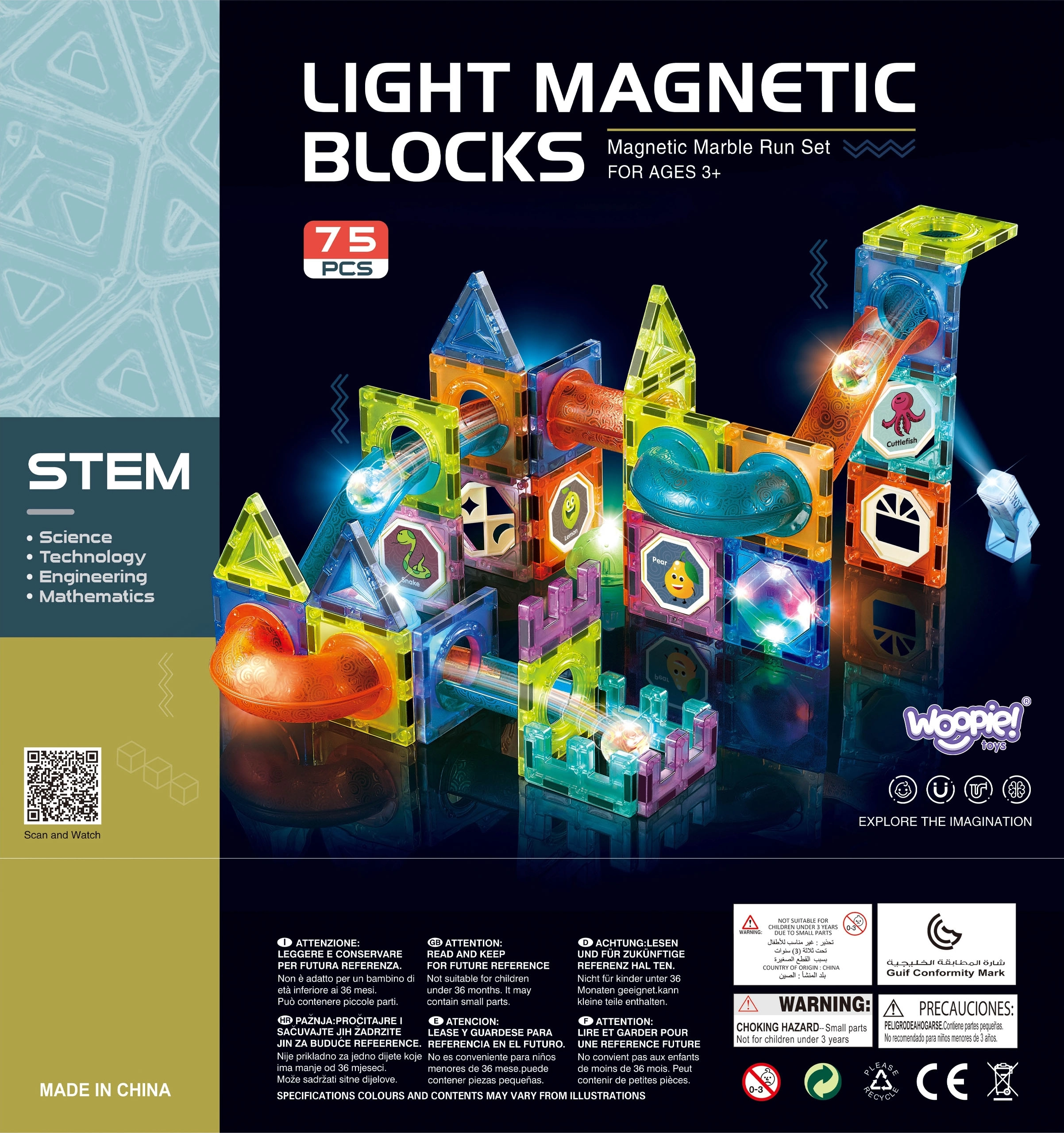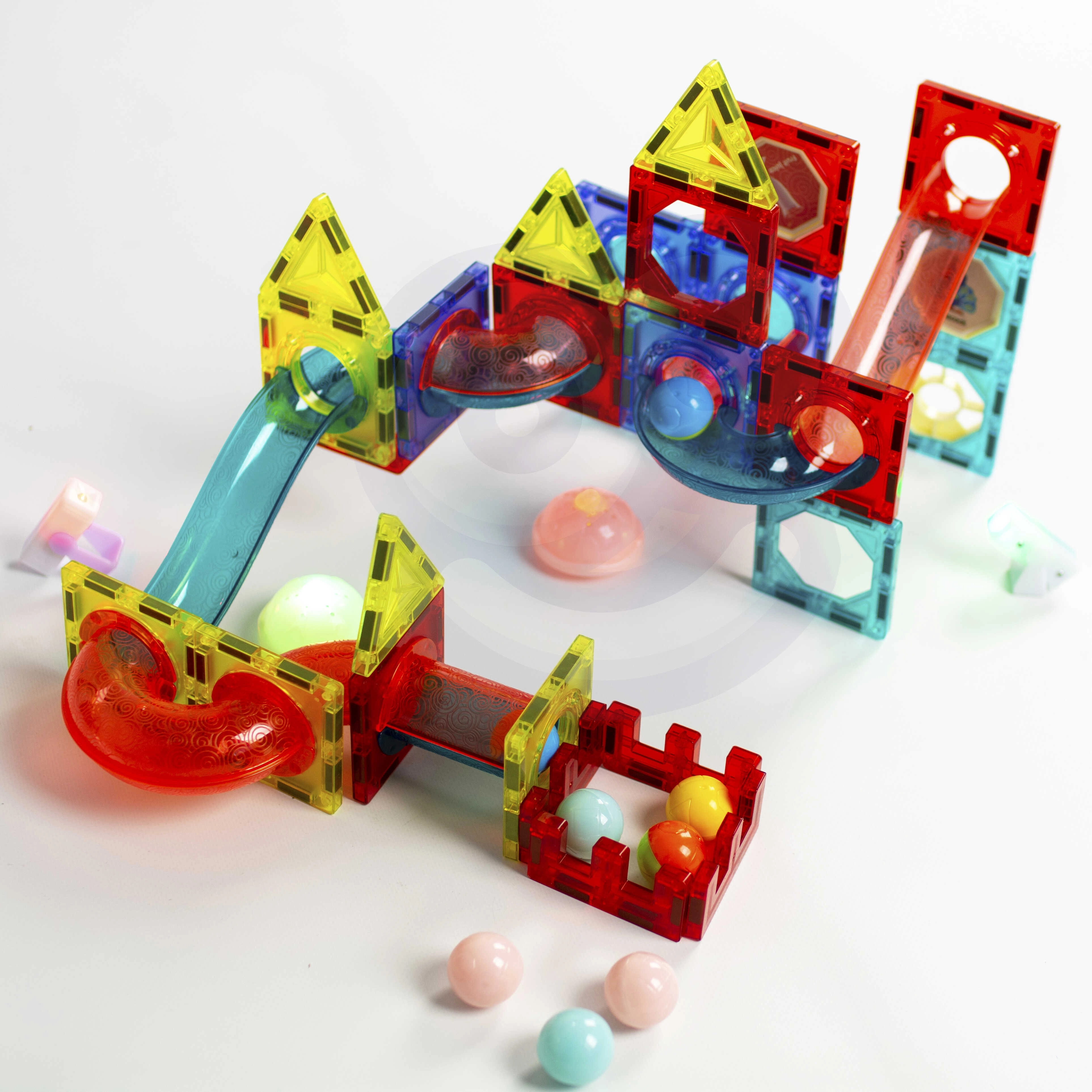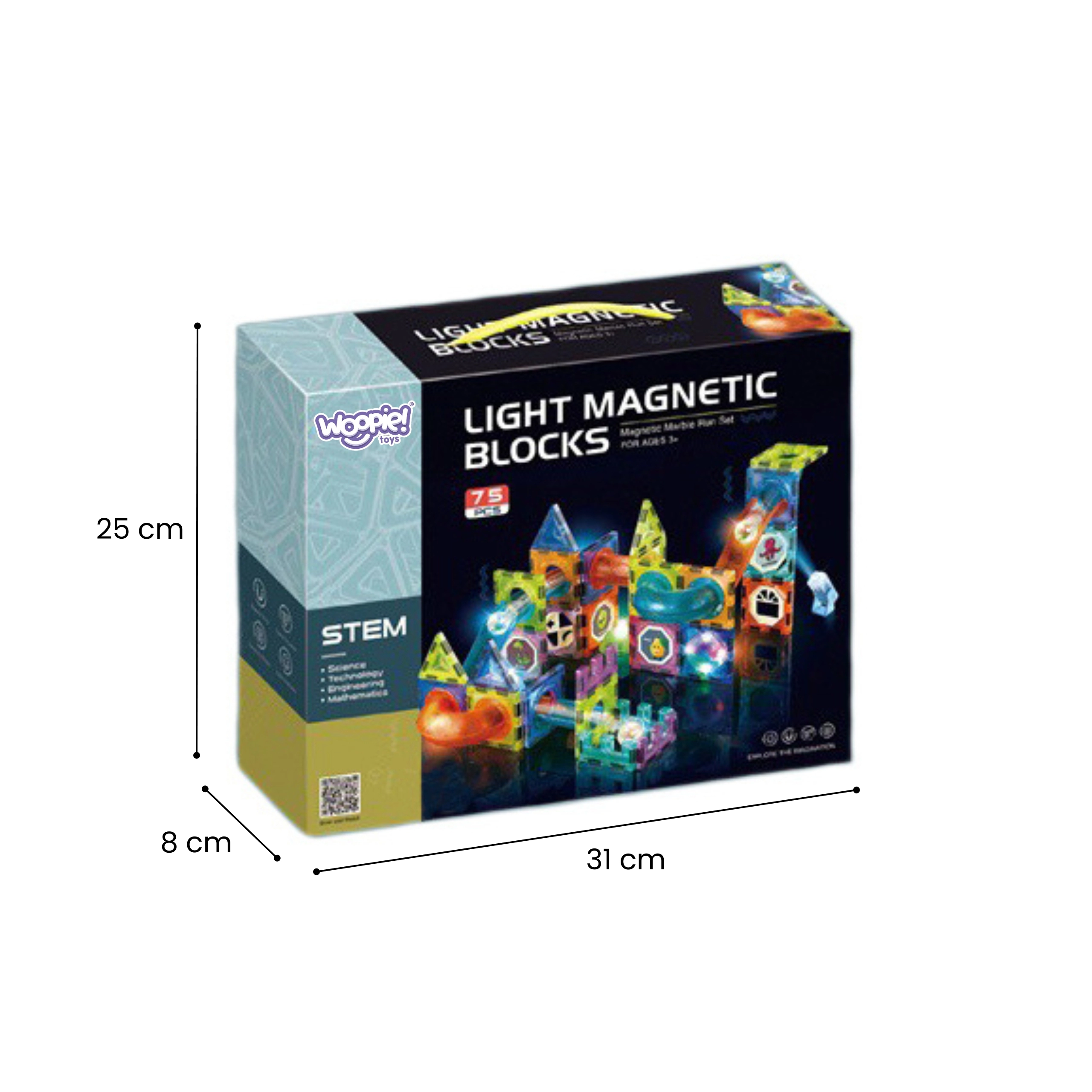 Αυτό το μαγνητικό σετ κατασκευών προσφέρει πλούσια συλλογή κομματιών για τη δημιουργία πρωτότυπων κατασκευών και δυναμικών πιστών μπίλιας. Με τις φωτεινές μπίλιες και τους προβολείς δημιουργείται εντυπωσιακή «λαμπερή» διαδρομή που τραβά την προσοχή των παιδιών και παρατείνει τον χρόνο παιχνιδιού. Οι ισχυροί μαγνήτες εξασφαλίζουν στιβαρές συνδέσεις, ώστε ακόμη και πιο σύνθετες 3D κατασκευές να παραμένουν σταθερές.