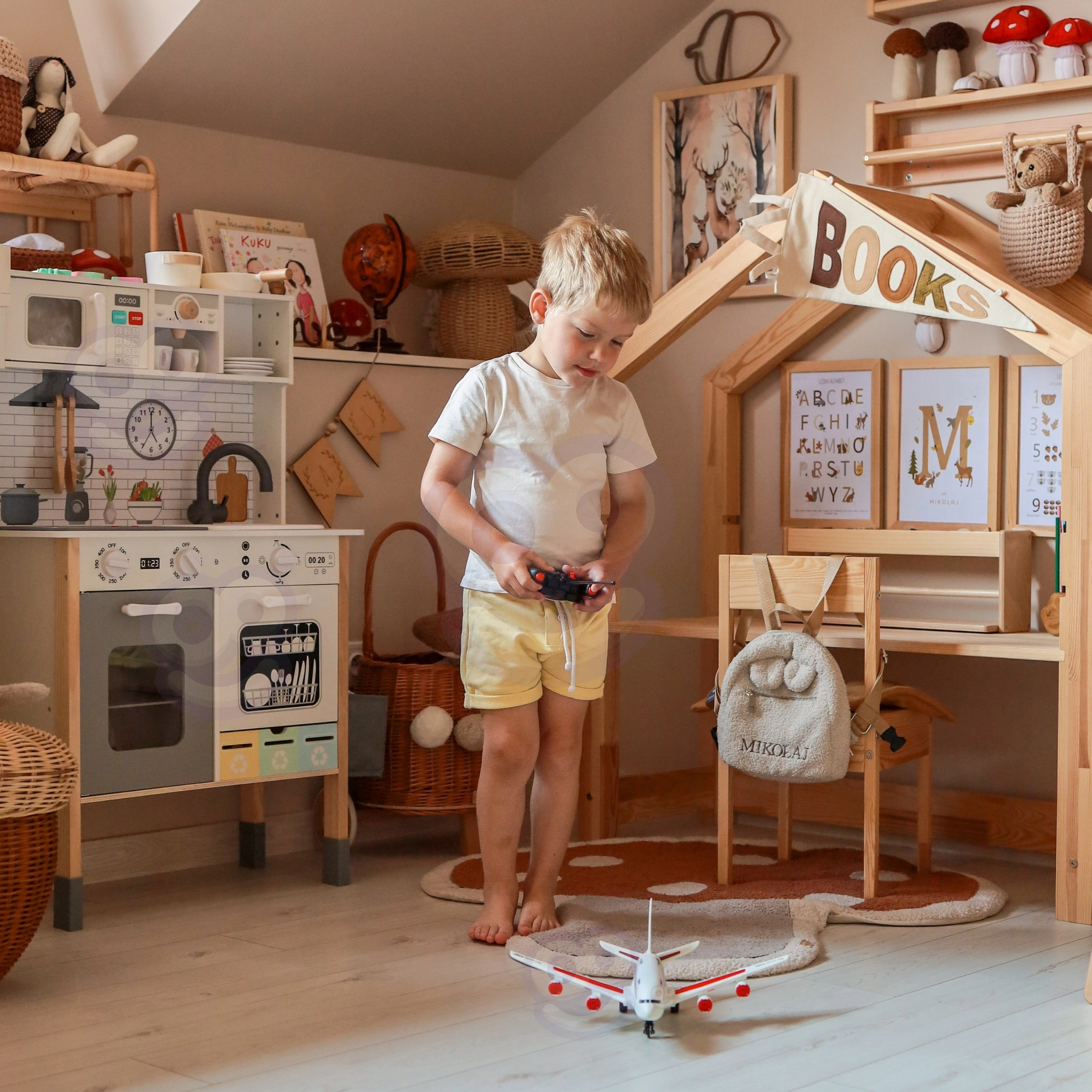 Το μοντέλο προορίζεται για κίνηση στο πάτωμα ή στο πεζοδρόμιο – τα παιδιά μπορούν να εξασκούν τροχοδρόμηση, στροφές και στάση, να δημιουργούν το δικό τους «αεροδρόμιο» και σενάρια αερομεταφορών. Ο τηλεχειρισμός είναι εύχρηστος και υποστηρίζει την ανάπτυξη δεξιοτήτων λεπτής κινητικότητας και φαντασίας.