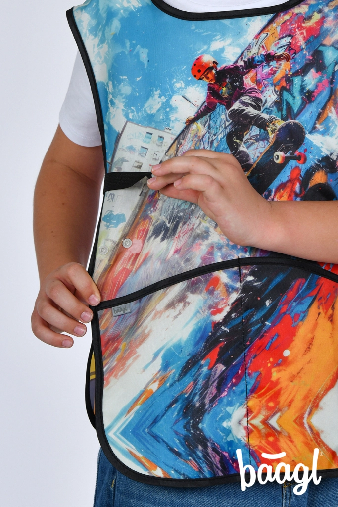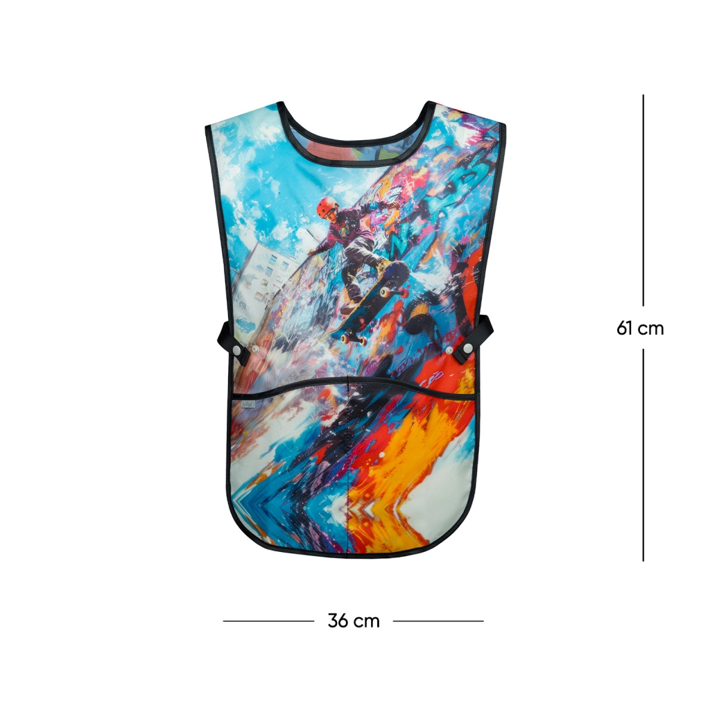Αναζητάτε αξιόπιστη προστασία ρούχων για μικρούς δημιουργούς; Η παιδική ποδιά Skatepark είναι ιδανική επιλογή για το σχολείο και τις εξωσχολικές δραστηριότητες. Χάρη στο ανθεκτικό και εύκολα καθαριζόμενο υλικό διατηρείται καθαρή και αντέχει ακόμη και στην πιο απαιτητική δημιουργία.