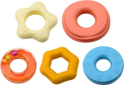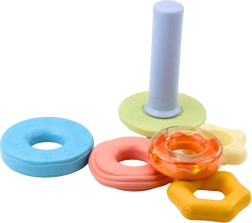 Κάθε δαχτυλίδι έχει διαφορετική υφή και ένα από αυτά διαθέτει κουδουνίστρα. Έτσι, το παιχνίδι προσφέρει ποικίλα ηχητικά και αισθητηριακά ερεθίσματα που ενισχύουν την αντίληψη και τη συγκέντρωση. Όλα τα μέρη είναι κατασκευασμένα από ασφαλή, ανθεκτικά υλικά χωρίς επιβλαβείς ουσίες, απολύτως κατάλληλα για τους μικρότερους χρήστες.