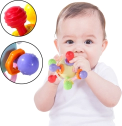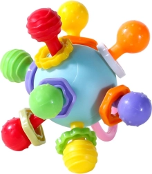 Η πολύχρωμη αισθητηριακή μπαλίτσα-μασητήρι έχει σχεδιαστεί για να γίνει απαραίτητος βοηθός του μωρού σας την περίοδο της οδοντοφυΐας. Είναι κατασκευασμένη από ασφαλές σιλικονούχο υλικό κατάλληλο για τρόφιμα και ανθεκτικό πλαστικό ABS, και διαθέτει 8 ελαστικά, μαλακά σημεία για μάσημα με διαφορετικές υφές και σχήματα. Αυτό προσφέρει στο μικρό σας ποικίλα απτικά ερεθίσματα και κάνει απαλή μάλαξη στα ευαίσθητα ούλα.