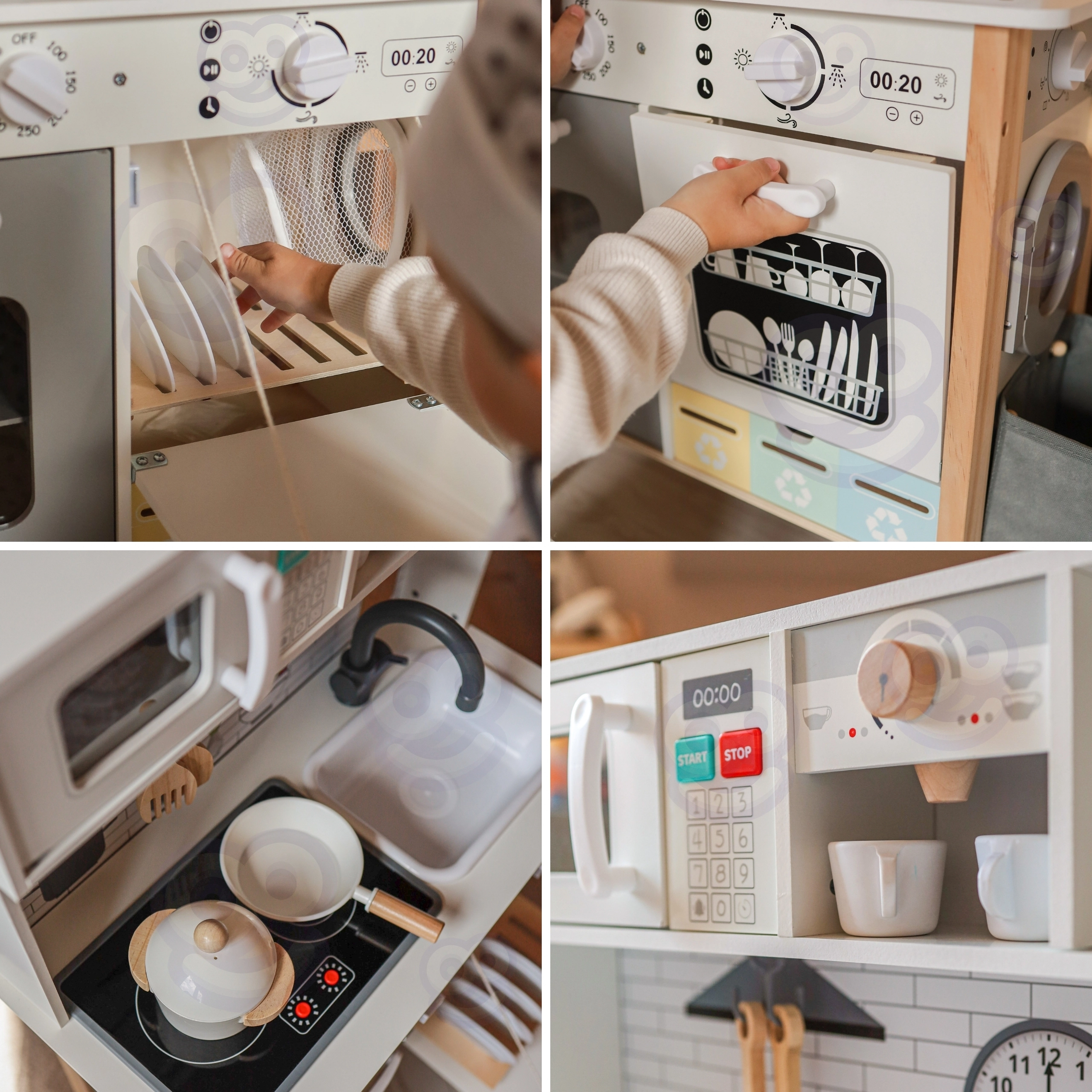 - Κέντρο παιχνιδιού 9σε1: μαγείρεμα, ψήσιμο, πλύσιμο, πλύσιμο ρούχων, ζωγραφική, μάθηση και διαλογή απορριμμάτων.