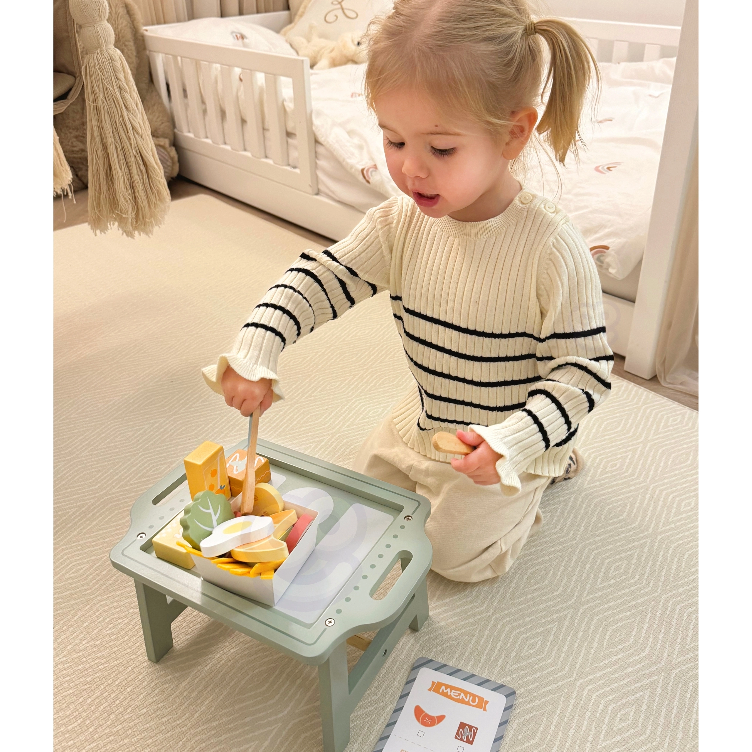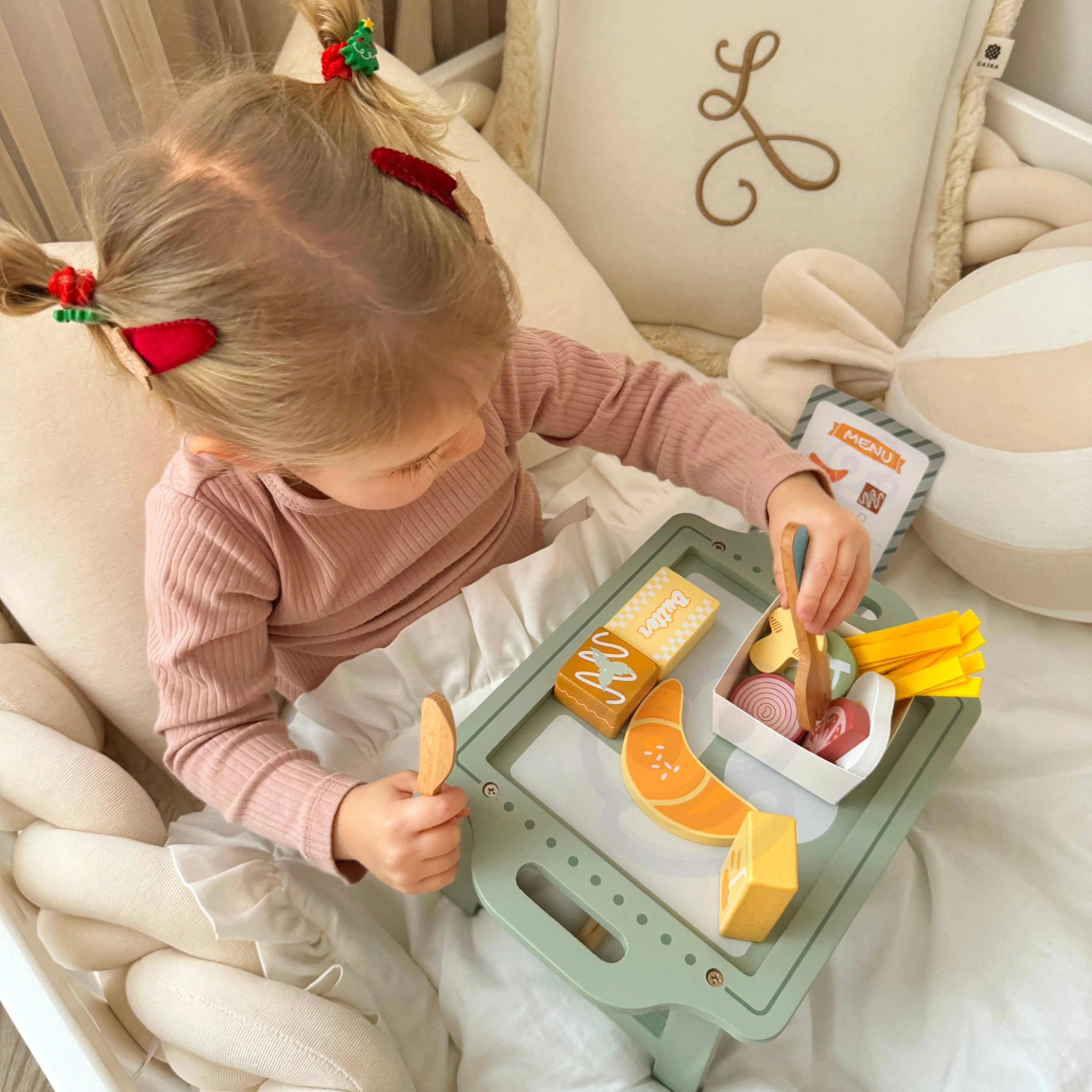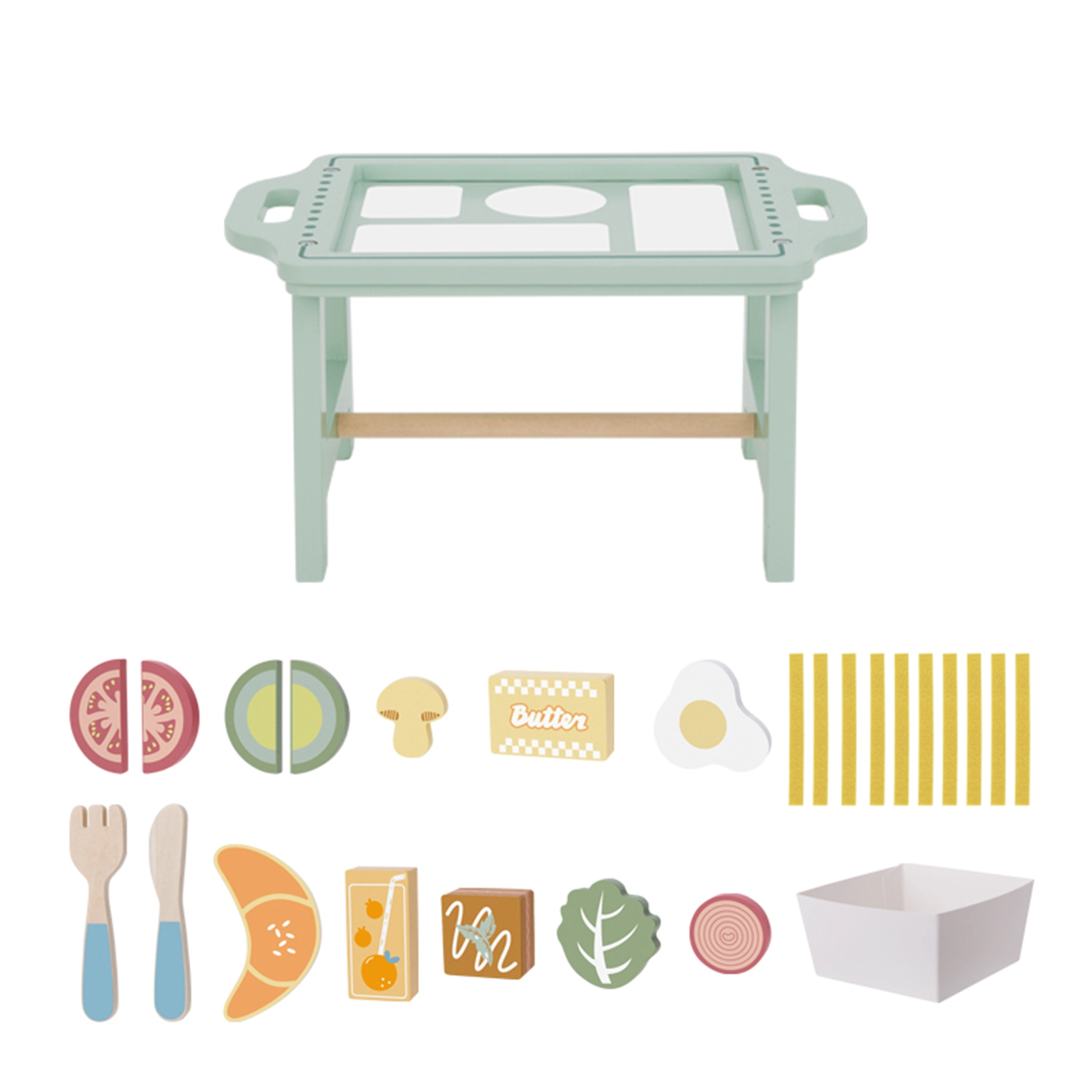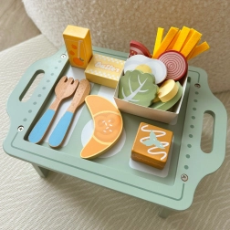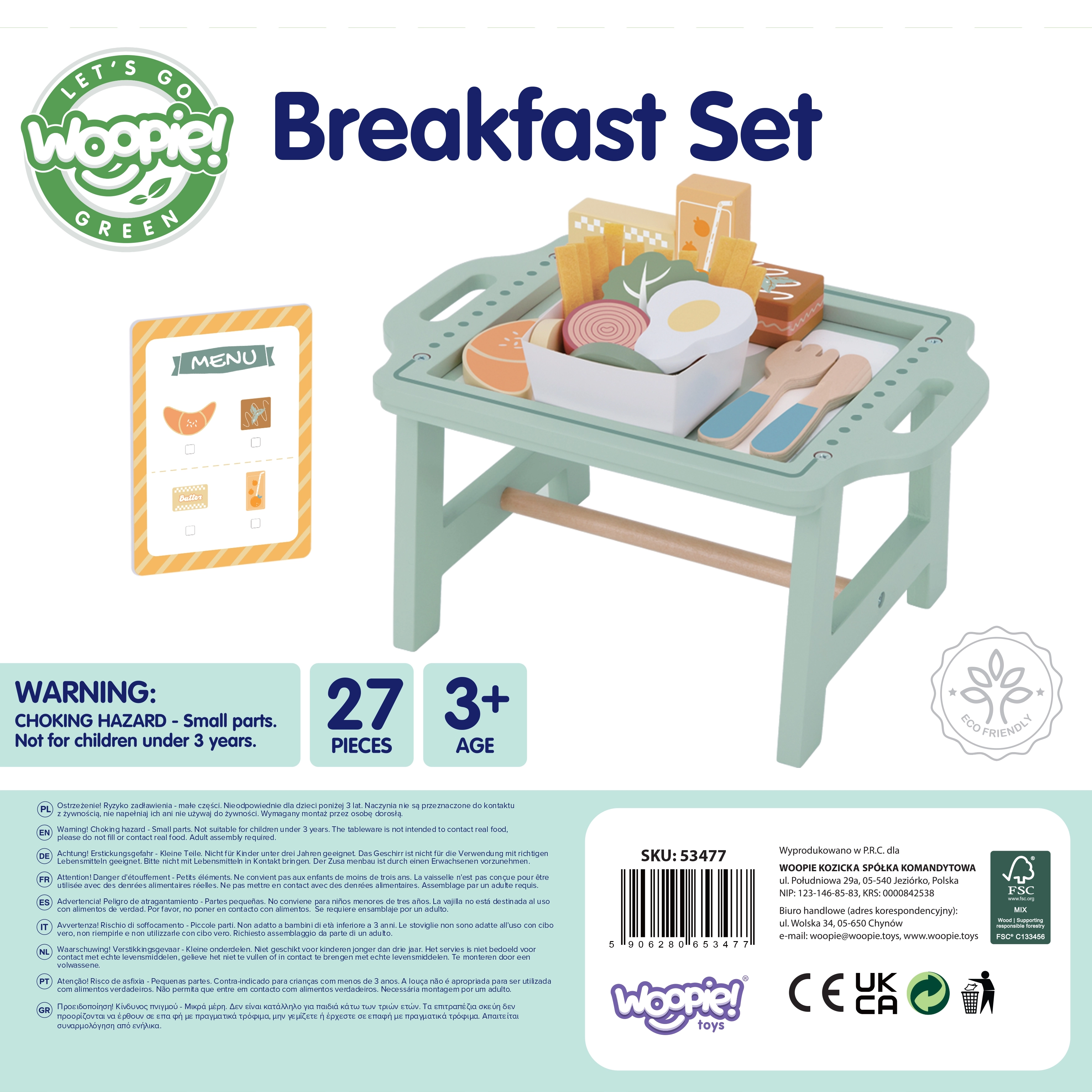 Το Woopie Green Παστέλ Σετ Πρωινού με Δίσκο και Ξύλινα Αξεσουάρ είναι κάτι περισσότερο από ένα παιχνίδι – είναι ένας τρόπος να εμπνεύσετε το παιδί σας σε νέες γαστρονομικές περιπέτειες. Με ρεαλιστικά ξύλινα στοιχεία και έναν κομψό δίσκο, το παιδί σας μπορεί να βυθιστεί πλήρως στο παιχνίδι. Κατάλληλο για παιδιά από 3 ετών, αυτό το σετ περιλαμβάνει έως και 26 στοιχεία κατασκευασμένα από φυσικό ξύλο, διασφαλίζοντας ανθεκτικότητα και ασφάλεια.
