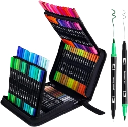 Απελευθερώστε τη δημιουργικότητά σας με το σετ των 120 πολύχρωμων μαρκαδόρων, που καλύπτει τις ανάγκες κάθε καλλιτέχνη, φοιτητή ή λάτρη των χειροτεχνιών. Η διπλή όψη κάθε μαρκαδόρου προσφέρει διαφορετικό πάχος μύτης: λεπτή για ακριβείς λεπτομέρειες και πιο χοντρή για γέμισμα και δημιουργία μεγαλύτερων επιφανειών.