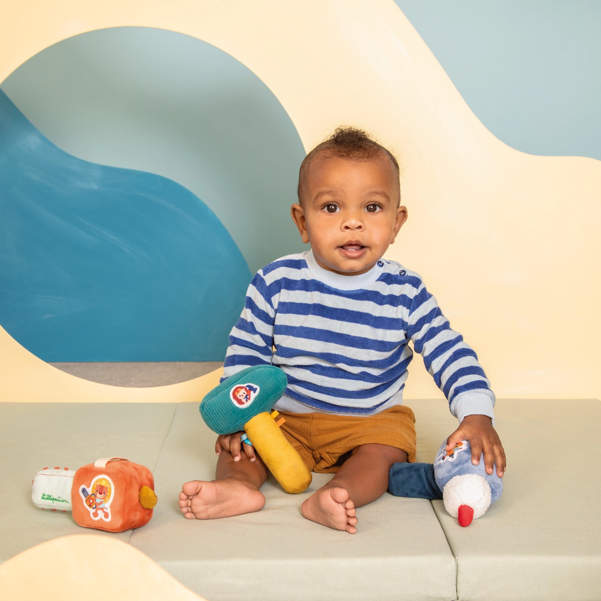 Η κουδουνίστρα είναι κατασκευασμένη από απαλό και ασφαλές πολυεστέρα, γεγονός που εξασφαλίζει ευχάριστο και ασφαλές παιχνίδι για το παιδί σας. Επιπλέον, είναι εύκολη στο πλύσιμο, ώστε η διατήρηση της καθαριότητας να είναι παιχνιδάκι.