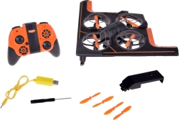 Το drone είναι κατασκευασμένο από ελαφριά και ανθεκτικά υλικά όπως φελιζόλ και πλαστικό, που προσφέρουν γρήγορο και ευέλικτο έλεγχο. Διαθέτει φωτισμό LED για καλύτερη ορατότητα κατά την πτήση και θυμίζει με το σχήμα του διαστημόπλοιο. Η συσκευασία περιλαμβάνει drone, joystick, ανταλλακτικές έλικες, βάση τηλεφώνου, καλώδιο USB και κατσαβίδι.