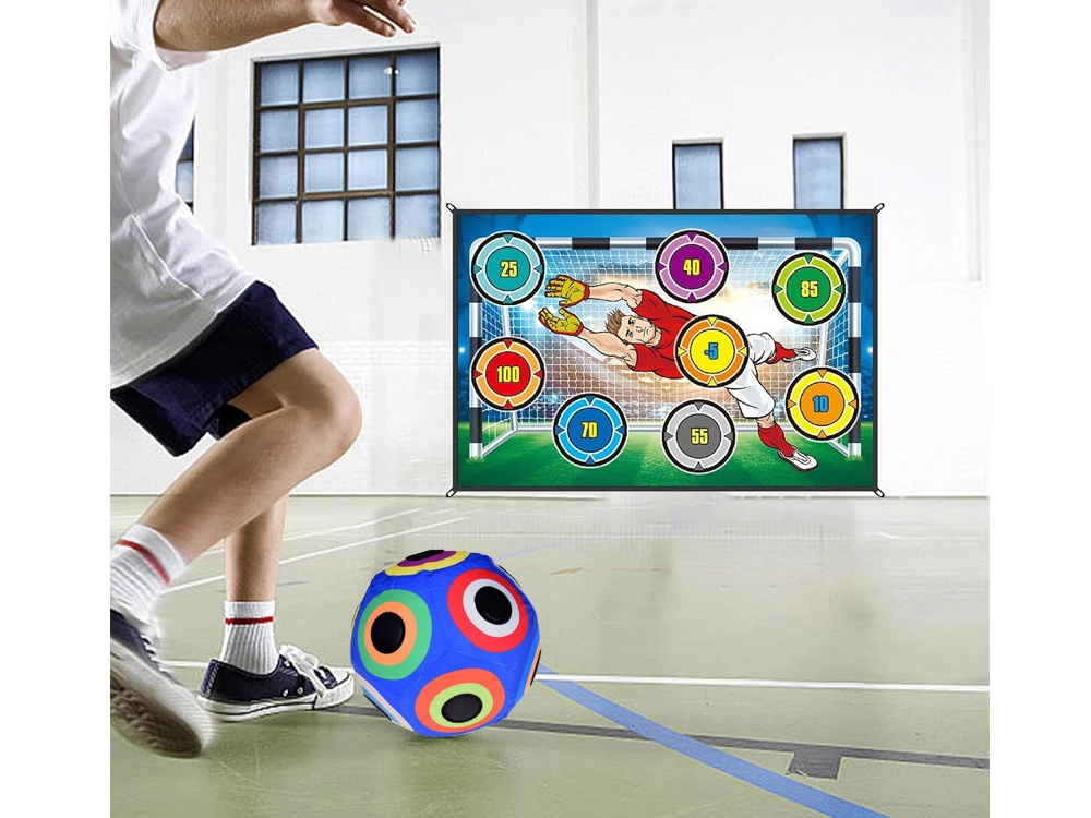 Το σετ ποδοσφαίρου με στόχο έχει σχεδιαστεί ώστε να είναι ασφαλές και φιλικό προς τα παιδιά. Είναι κατασκευασμένο από ανθεκτικά, μη τοξικά υλικά, που είναι μαλακά και ασφαλή. Ο πολύχρωμος και ελκυστικός στόχος τραβά την προσοχή των παιδιών και τα ενθαρρύνει να ασκούνται. Η φωτιζόμενη μπάλα προσθέτει επιπλέον έκπληξη στο παιχνίδι· φωτίζει κατά τη ρίψη, αυξάνοντας τη διασκέδαση. Το παιχνίδι είναι εύκολο στη χρήση· τα παιδιά μπορούν μόνα τους να προσπαθούν να πετύχουν την μπάλα στις οπές, αναπτύσσοντας ακρίβεια και συγκέντρωση. Επιπλέον, υποστηρίζει την ανάπτυξη της κινητικότητας· οι ρίψεις, η στόχευση και το πιάσιμο βοηθούν στην άσκηση της λεπτής κινητικότητας και του συντονισμού χεριού-ματιού.