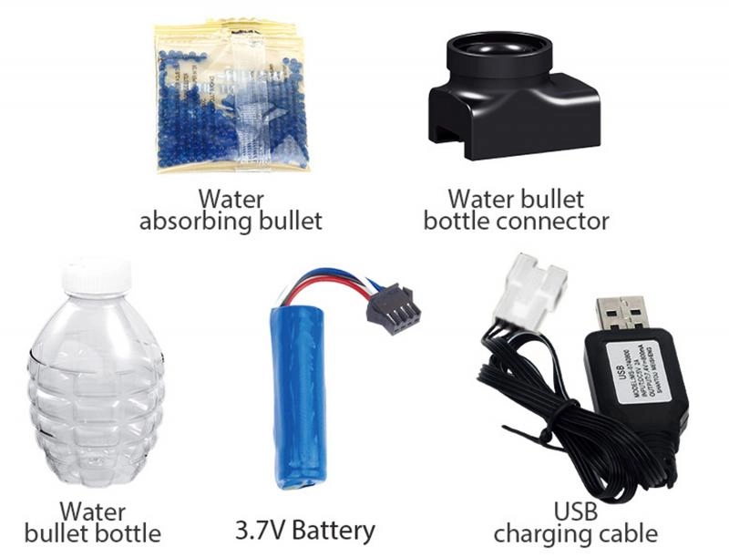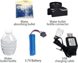 Στη συσκευασία θα βρείτε τον εκτοξευτή, τον γεμιστήρα, προστατευτικά γυαλιά, επαναφορτιζόμενη μπαταρία και καλώδιο USB. Αρκεί να ενυδατώσετε τις μπίλιες και να ξεκινήσετε το παιχνίδι.