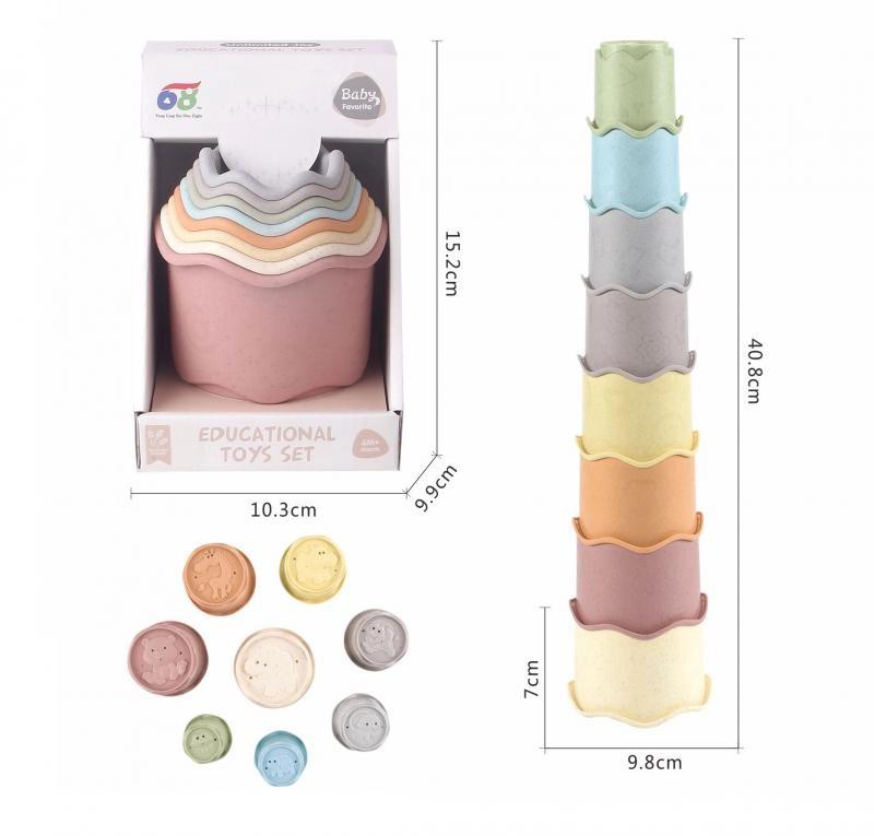Ο αγαπημένος πύργος από 8 κυπελλάκια είναι ιδανικό παιχνίδι για τους μικρότερους. Χάρη στην ευέλικτη χρήση του, τα παιδιά μπορούν να το απολαμβάνουν στο μπάνιο, στην άμμο και στο παιχνίδι στο σπίτι. Το στοίβαγμα και το ταίριασμα υποστηρίζουν τον συντονισμό χεριού–ματιού και την ανάπτυξη του χωρικού προσανατολισμού.