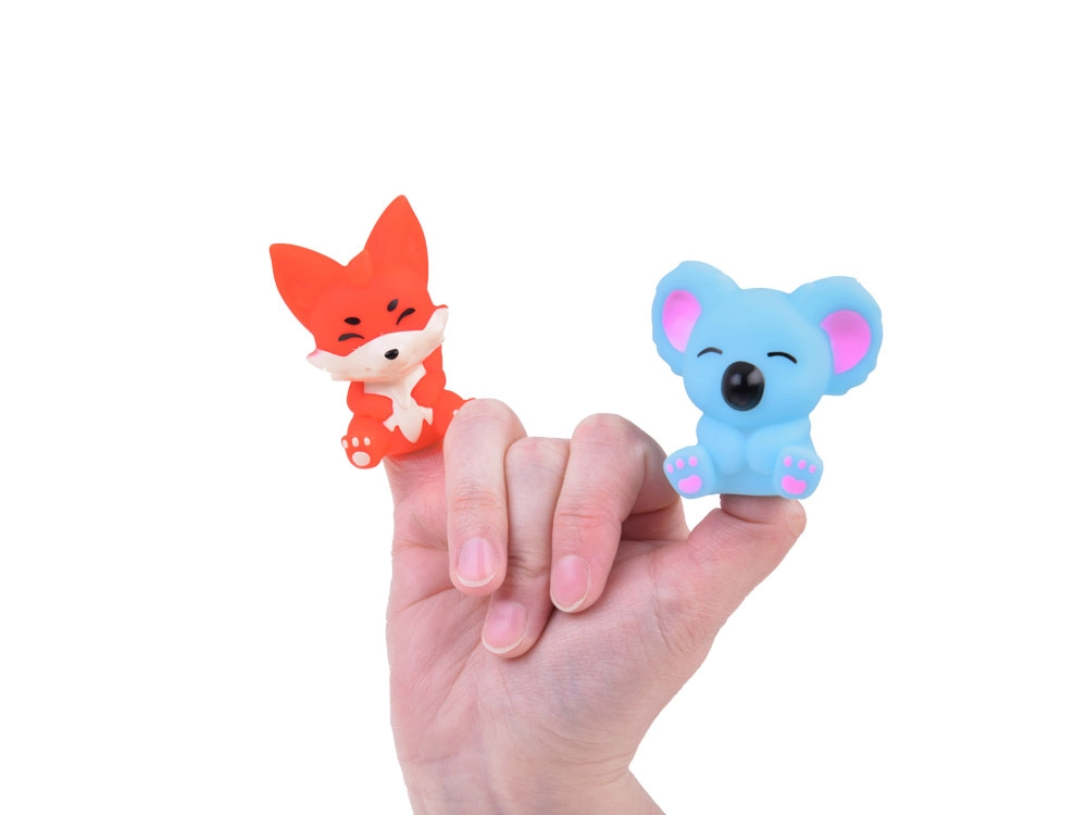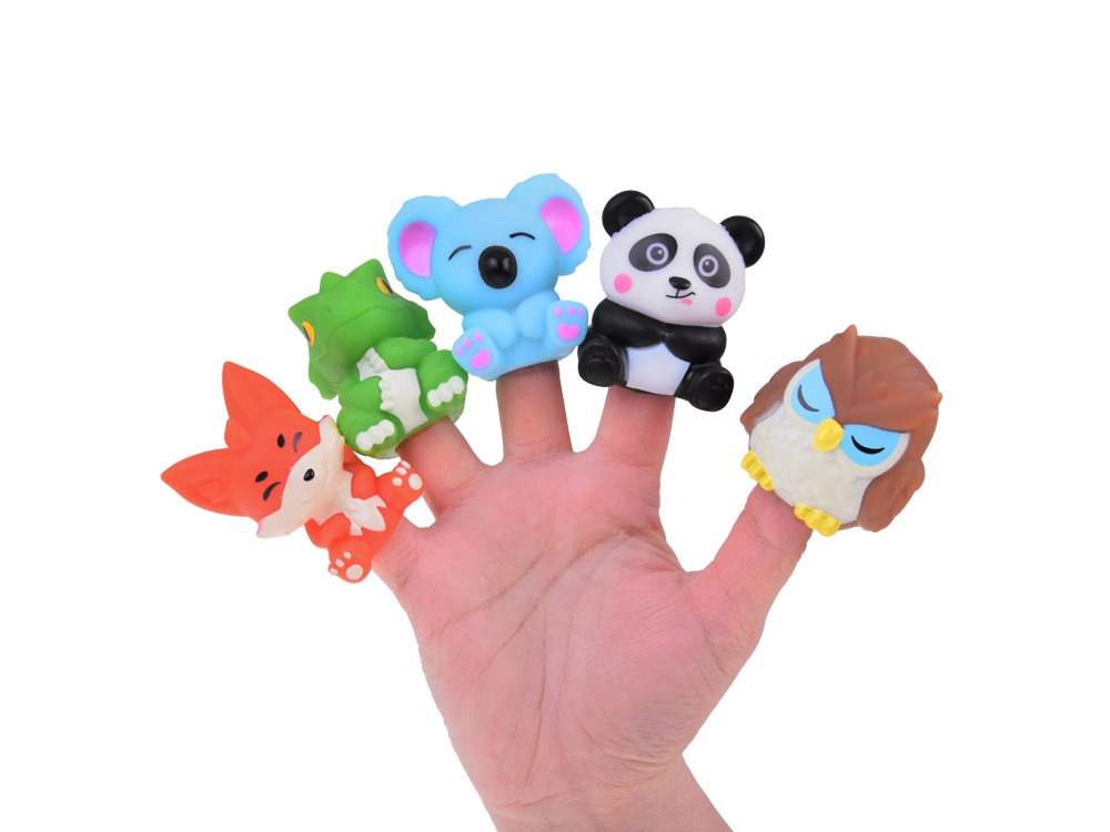 Αυτές οι λαστιχένιες φιγούρες απεικονίζουν διάφορα ζωάκια, που ξεχωρίζουν αμέσως χάρη στα ζωηρά χρώματα. Κάθε φιγούρα έχει ένα άνοιγμα που επιτρέπει να τοποθετηθεί στο δάχτυλο. Έτσι, παιδιά και γονείς μπορούν να μπουν σε διαφορετικούς ρόλους, να ζωντανέψουν τα ζωάκια μέσα από διαλόγους, ιστορίες και μικρές σκηνές. Αυτό το παιχνίδι είναι μια εξαιρετική ευκαιρία για την ανάπτυξη της φαντασίας, της δημιουργικότητας και των γλωσσικών δεξιοτήτων.
