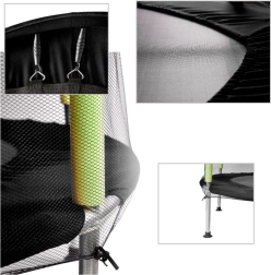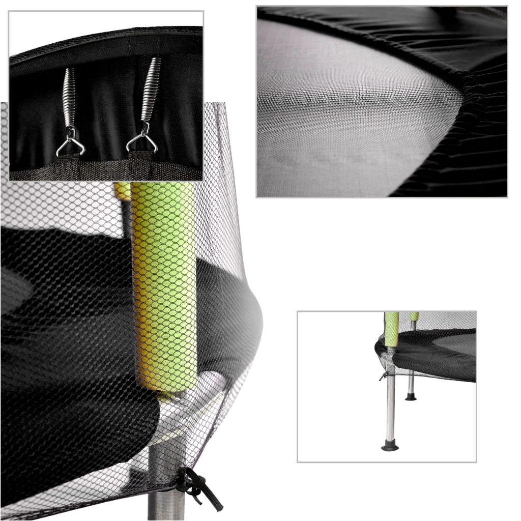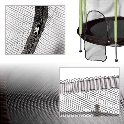 Το προστατευτικό δίχτυ αγκαλιάζει σταθερά την επιφάνεια αναπήδησης και το άνοιγμα με διπλό φερμουάρ αποτρέπει το τυχαίο άνοιγμα. Τα αφρώδη καλύμματα των στύλων προστατεύουν από χτυπήματα ώστε τα παιδιά να παίζουν χωρίς έγνοιες.