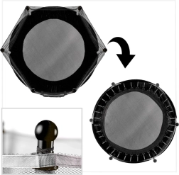 Έξι ατσάλινες βάσεις με αντιολισθητικές τάπες κρατούν το τραμπολίνο σταθερό στη θέση του. Η ελαστική επιφάνεια και τα 36 ισχυρά ελατήρια προσφέρουν ομαλή ώθηση και άνετες προσγειώσεις.