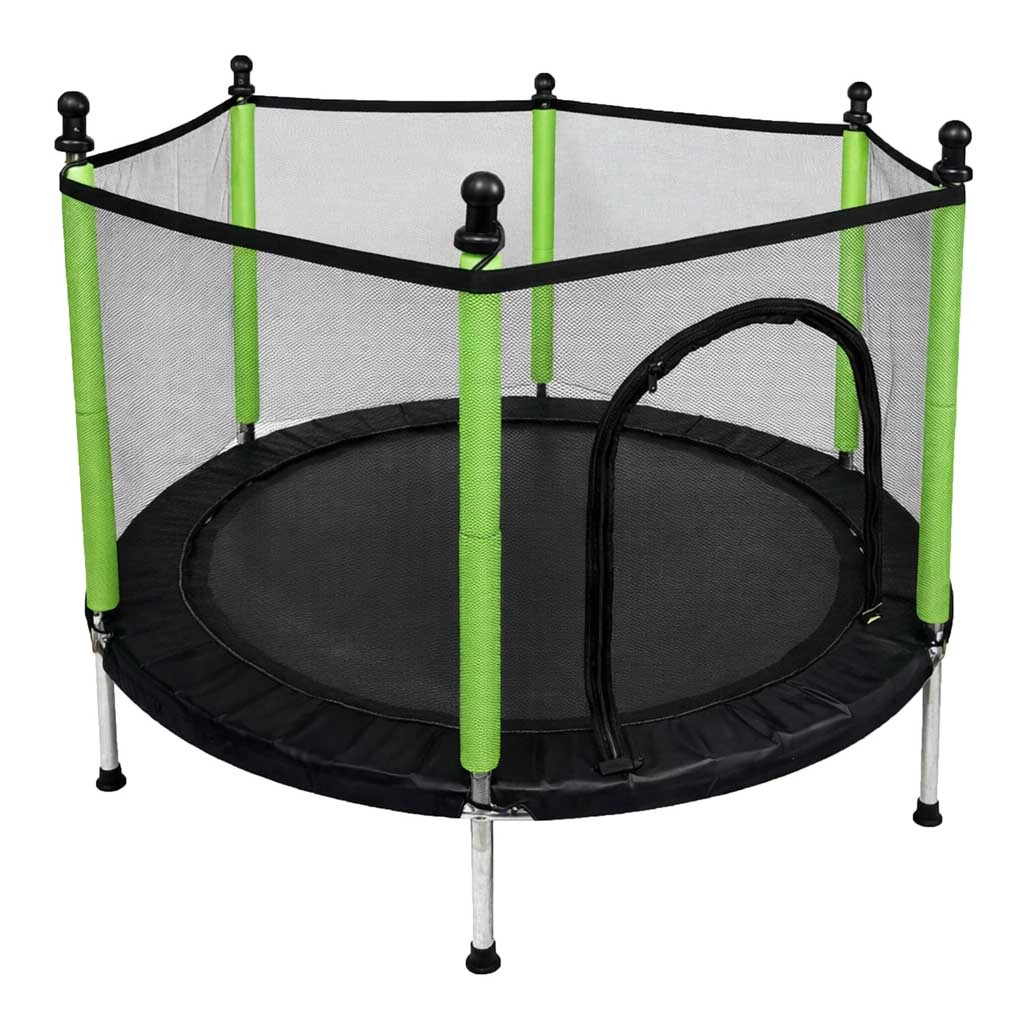 Αυτό το συμπαγές τραμπολίνο με δίχτυ είναι ιδανικό για τον κήπο, τη βεράντα ή για ένα πιο ευρύχωρο παιδικό δωμάτιο. Το προστατευτικό δίχτυ με διπλό φερμουάρ δημιουργεί μια ασφαλή ζώνη για άλματα, ενώ οι έξι στιβαρές βάσεις με αντιολισθητικά τελειώματα εξασφαλίζουν σταθερότητα ακόμη και σε έντονο παιχνίδι.