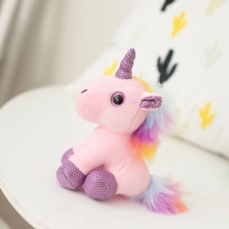 Αυτός ο γοητευτικός λούτρινος μονόκερος λειτουργεί ως πρωτότυπο αξεσουάρ για σακίδιο, τσάντα, κλειδιά ή κασετίνα. Κατασκευασμένος από ευχάριστο ροζ λούτρινο με λαμπερά μωβ στοιχεία, διαθέτει απαλή χαίτη και ουρά σε ουράνια χρώματα και λαμπερό κέρας. Αυτός ο μικρός μονόκερος θα μαγέψει τόσο παιδιά όσο και ενήλικες.
