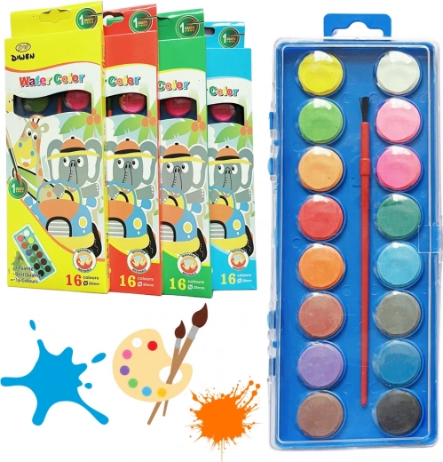 Το σετ σχολικών ακουαρελών είναι ιδανικό για παιδιά που μόλις μαθαίνουν να ζωγραφίζουν, καθώς και για εκείνα που ήδη αναπτύσσουν τις καλλιτεχνικές τους δεξιότητες. Αυτή η συσκευασία περιλαμβάνει 16 έντονα χρώματα, τα οποία μπορείτε να χρησιμοποιείτε άνετα χάρη στην πλαστική παλέτα με το διάφανο καπάκι.