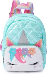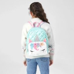 Το μοντέλο είναι κατασκευασμένο από ανθεκτικό και ταυτόχρονα ελαφρύ υλικό, ανθεκτικό στην καθημερινή χρήση. Στο μπροστινό μέρος υπάρχει απαλή εφαρμογή με μοτίβο μονόκερου, συμπεριλαμβανομένων ανάγλυφων αυτιών και κεράτου, που προσδίδουν μοναδικότητα. Το σακίδιο διαθέτει μία κύρια ευρύχωρη θήκη, μία μικρότερη εσωτερική τσέπη και μία επιπλέον εξωτερική τσέπη με φερμουάρ.