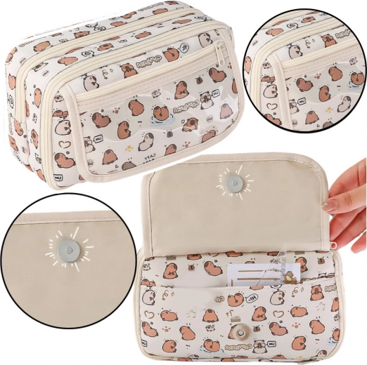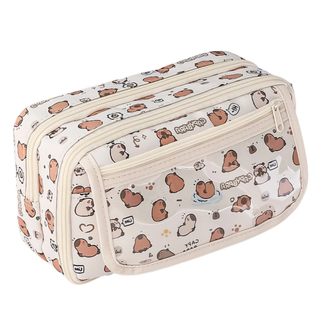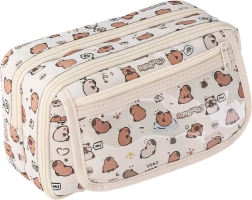 Μεγάλη και λειτουργική κασετίνα με μοτίβο καπιμπάρα, ιδανική για μαθητές που δίνουν αξία στην πρακτικότητα και τον χαριτωμένο σχεδιασμό. Σε κρεμ απόχρωση με εκτύπωση συμπαθητικών καπιμπάρα, ξεχωρίζει ανάμεσα στα υπόλοιπα σχολικά είδη. Κατάλληλη για σχολείο, πανεπιστήμιο, μαθήματα καλλιτεχνικών ή το οικιακό γραφείο.