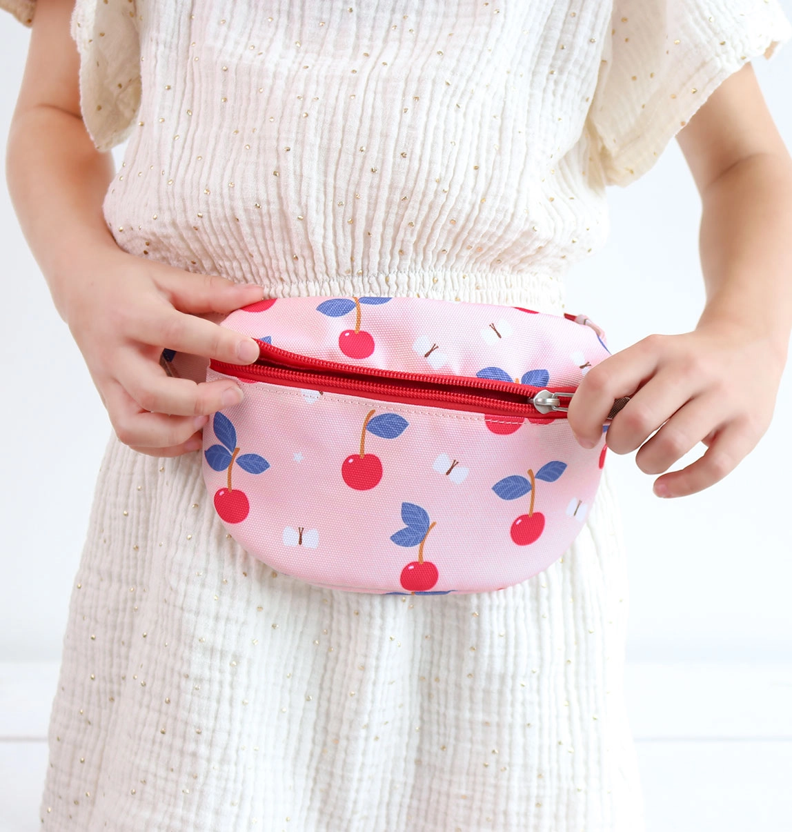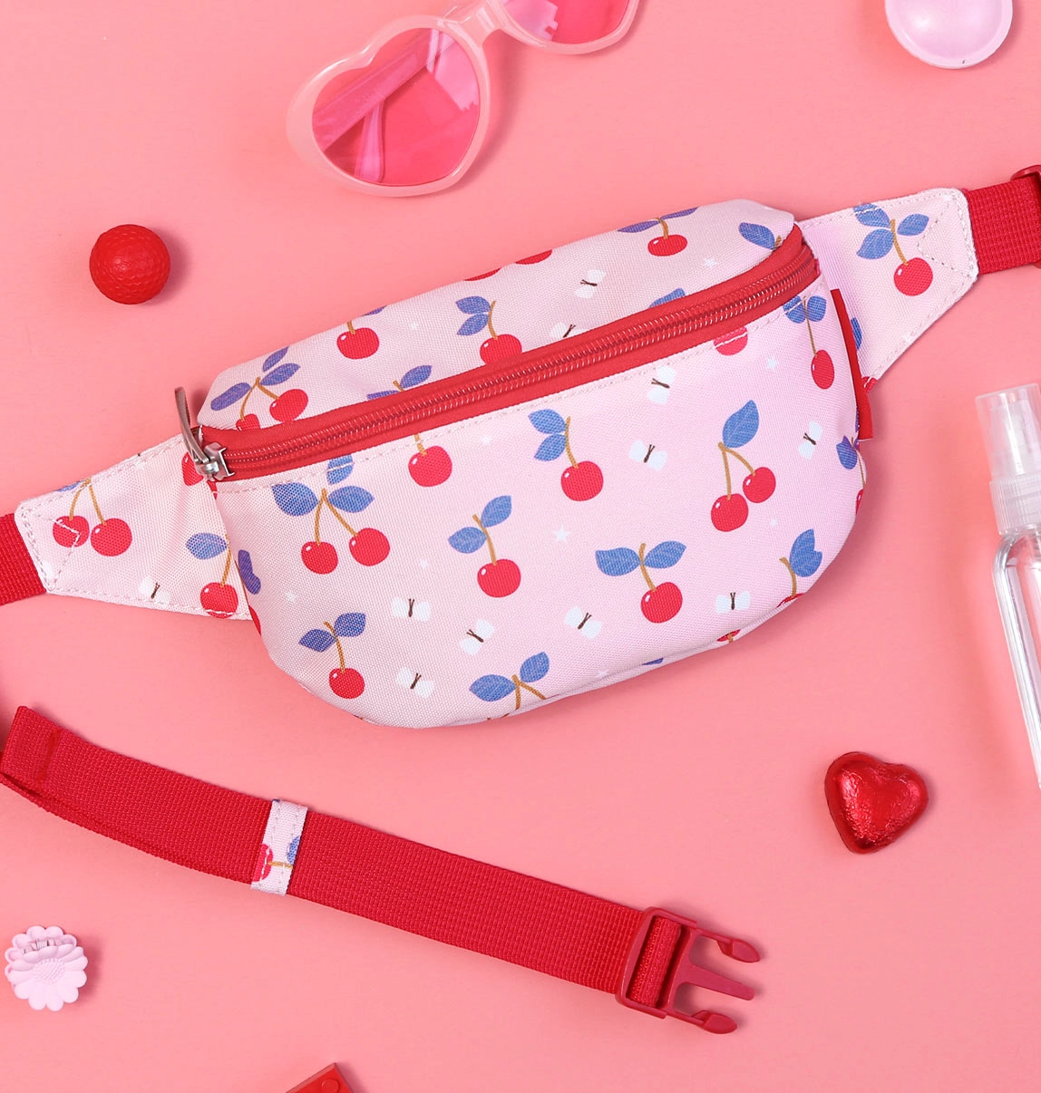 Κρατήστε το παιδί σας στιλάτο με αυτό το χαριτωμένο τσαντάκι. Παιδικό ροζ τσαντάκι μέσης με χαρούμενη στάμπα κερασιών, όχι μόνο ένα μοδάτο αξεσουάρ αλλά και πρακτικό βοήθημα: