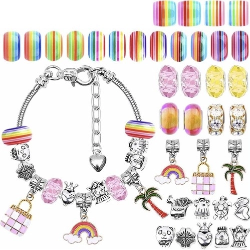 Δημιουργικό σετ για την κατασκευή κοσμημάτων και βραχιολιών για παιδιά, που προσφέρει πολλά πολύχρωμα χάντρες και μενταγιόν διαφόρων σχημάτων, επιτρέποντας τη δημιουργία όμορφων βραχιολιών και κολιέ.
