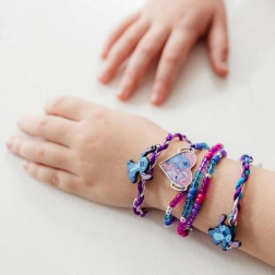 Περιλαμβάνεται απλός εικονιστικός οδηγός, ώστε να μπορούν να ξεκινήσουν τη δημιουργία ακόμη και μικρότερα παιδιά. Τα ελαφριά και άνετα υλικά φοριούνται ευχάριστα και, χάρη στα ρυθμιζόμενα κλεισίματα, τα κοσμήματα εφαρμόζουν καλά στους παιδικούς καρπούς.