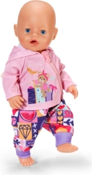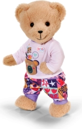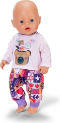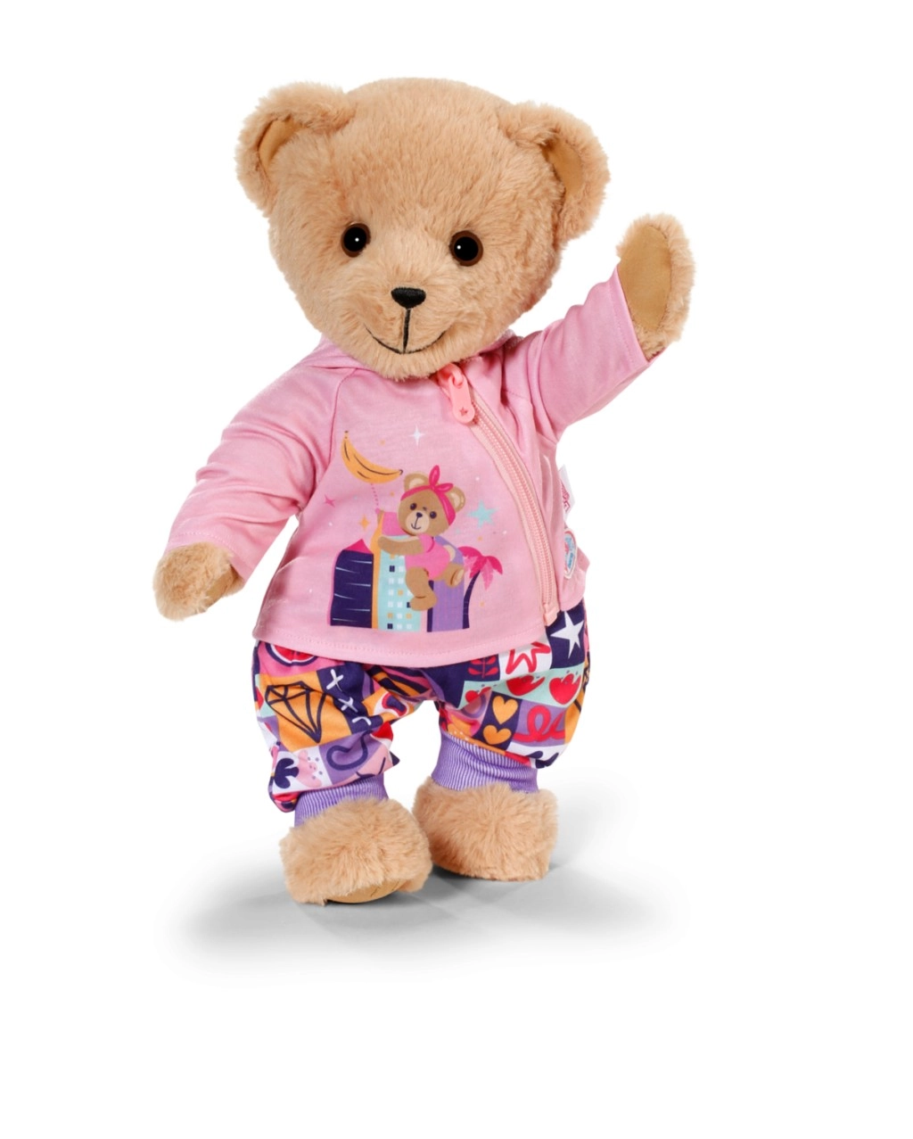 Με αυτό το σετ ρούχων θα χαρίσετε στην κούκλα και στο αρκουδάκι BABY born Teddy άνεση και στυλ για κάθε περιπέτεια. Το ροζ φούτερ με φερμουάρ, κουκούλα και χαριτωμένα αυτάκια φοριέται εύκολα, το ανοιχτό μωβ μακρυμάνικο μπλουζάκι με αρκουδάκι είναι πολύ μαλακό και το παντελόνι με πολύχρωμο patchwork μοτίβο εξασφαλίζει άνεση στο παιχνίδι.