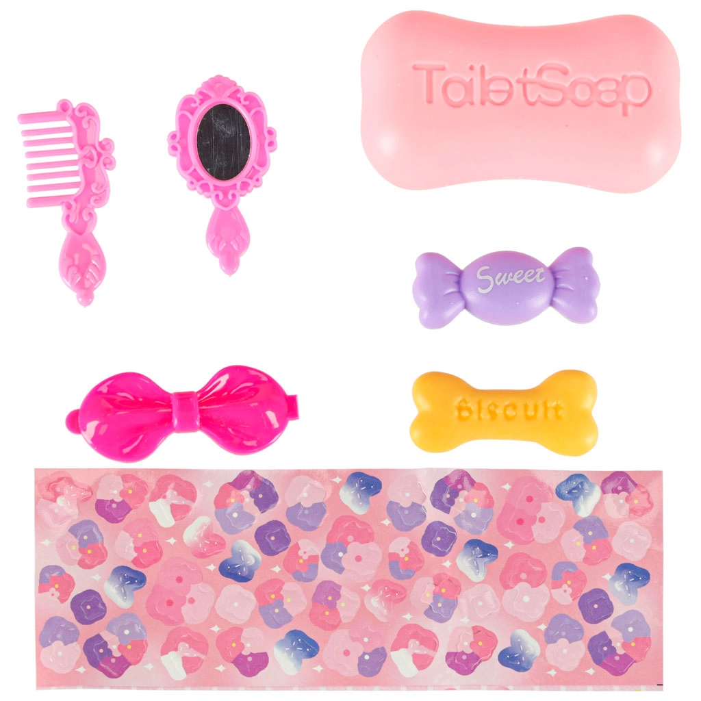 • Αξεσουάρ: παιχνιδόσαπονο, χτενάκι, καθρεφτάκι, φιόγκο-κορδέλα, καραμέλα, μπισκότο