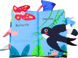 Κάθε σελίδα αυτού του βιβλιαρίου παρουσιάζει ένα πολύχρωμο πουλάκι με ουρά από διάφορα υλικά, ενισχύοντας την ανάπτυξη της αίσθησης της αφής και τον συντονισμό των κινήσεων. Το βιβλίο περιλαμβάνει κρυφή σφυρίχτρα, που διεγείρει τη φυσική περιέργεια του παιδιού και προσφέρει ακουστικά ερεθίσματα. Περιλαμβάνονται επίσης θροΐζοντα στοιχεία, που κάνουν το παιχνίδι ακόμη πιο ενδιαφέρον.