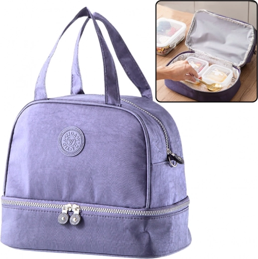 Χάρη στην διπλή κατασκευή και τη μονωμένη θερμική στρώση, η τσάντα διατηρεί αποτελεσματικά τη θερμοκρασία των αποθηκευμένων προϊόντων, είτε πρόκειται για ζεστά φαγητά είτε για κρύα ποτά και σνακ. Η κύρια κάτω θήκη είναι ευρύχωρη και χωράει εύκολα lunch boxes, φρούτα, ποτά, μπουκάλια ή θερμικές κούπες. Η επάνω τσέπη προορίζεται για μικροαντικείμενα όπως μπάρες, γιαούρτια, χαρτομάντηλα ή μαχαιροπίρουνα, επιτρέποντας να διατηρείται το περιεχόμενο οργανωμένο και εύκολα προσβάσιμο.